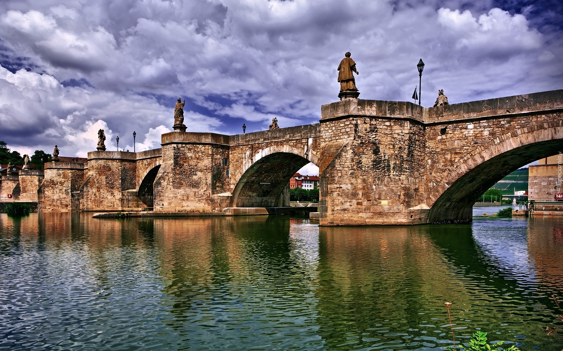 Edytor tapety: Alte Mainbrücke, Men, Bawaria, Niemcy