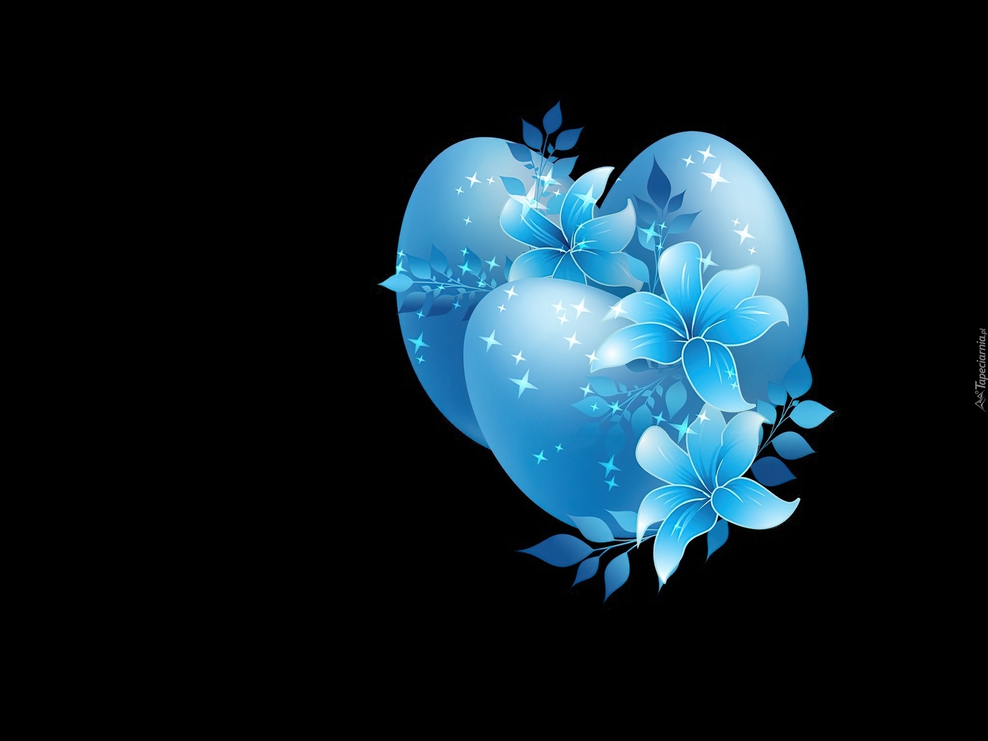 Edytor tapety: Niebieskie, Serca, Kwiaty