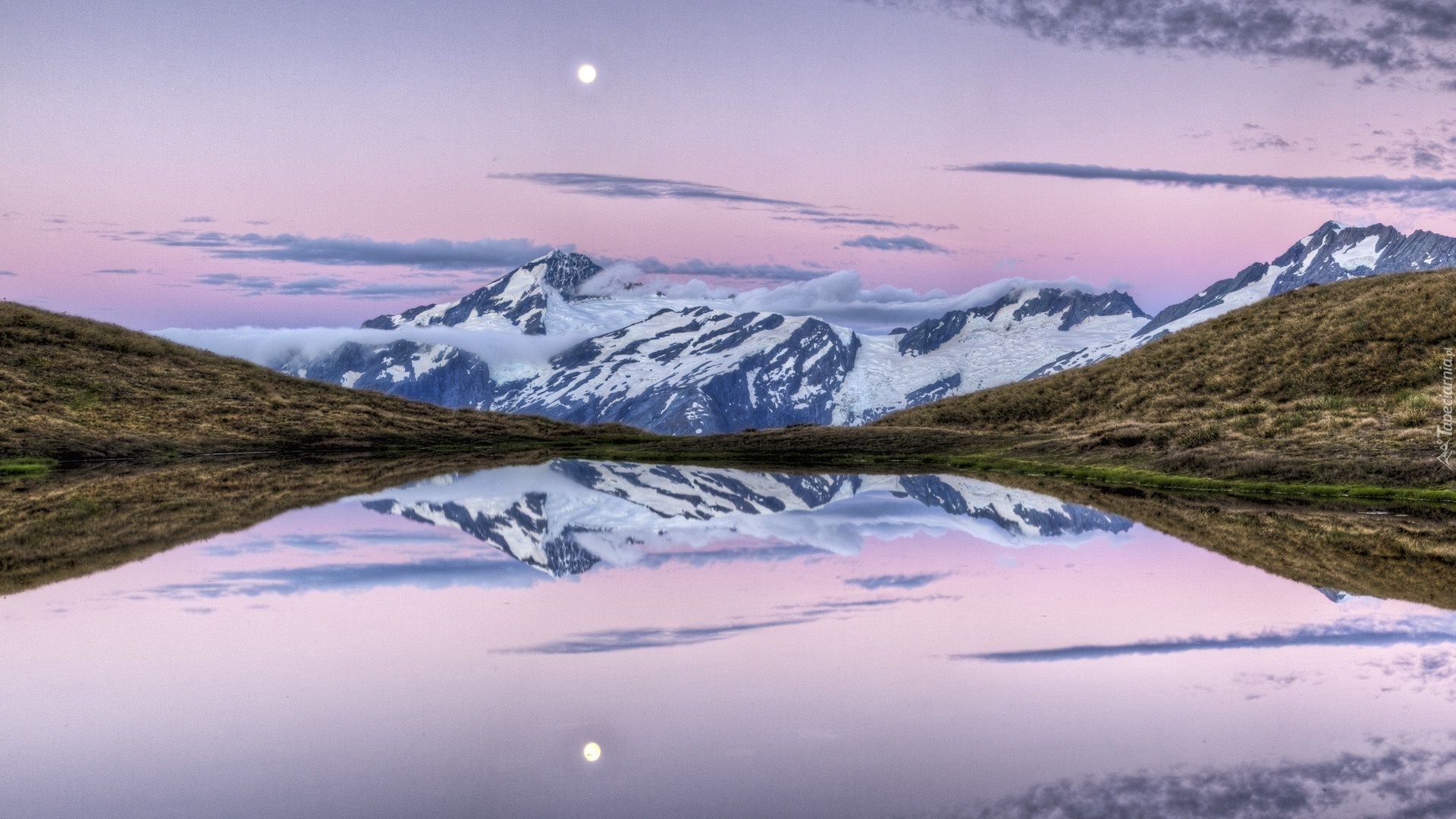 Edytor tapety: Góry, Wysokość, Śnieg, Jezioro, Trawa