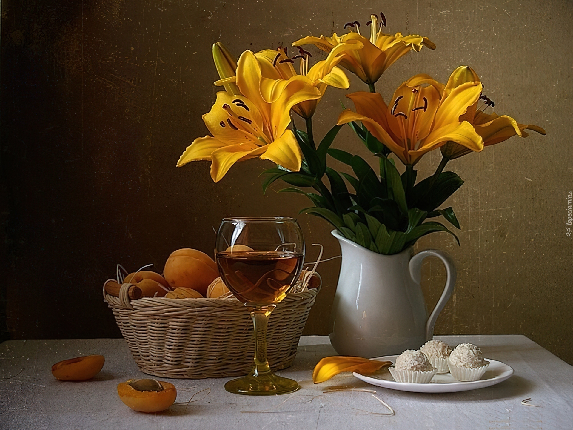 Edytor tapety: Żółte, Lilie, Cukierki, Morele, Wino