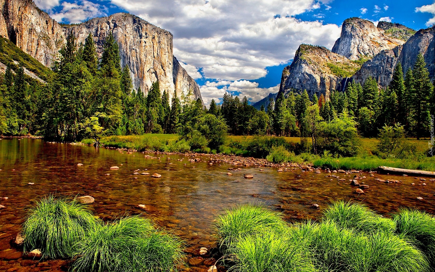 Edytor tapety: Góry, Woda, Drzewa, Trawy