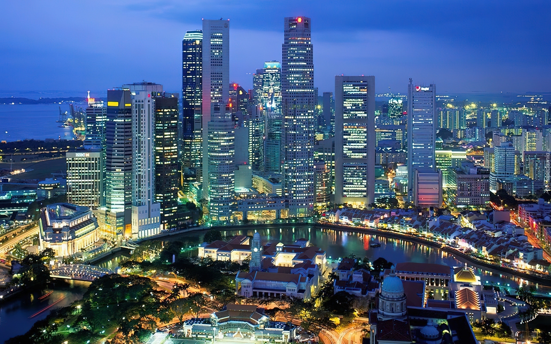Edytor tapety: Miasto, Nocą, Światła, Wieżowce