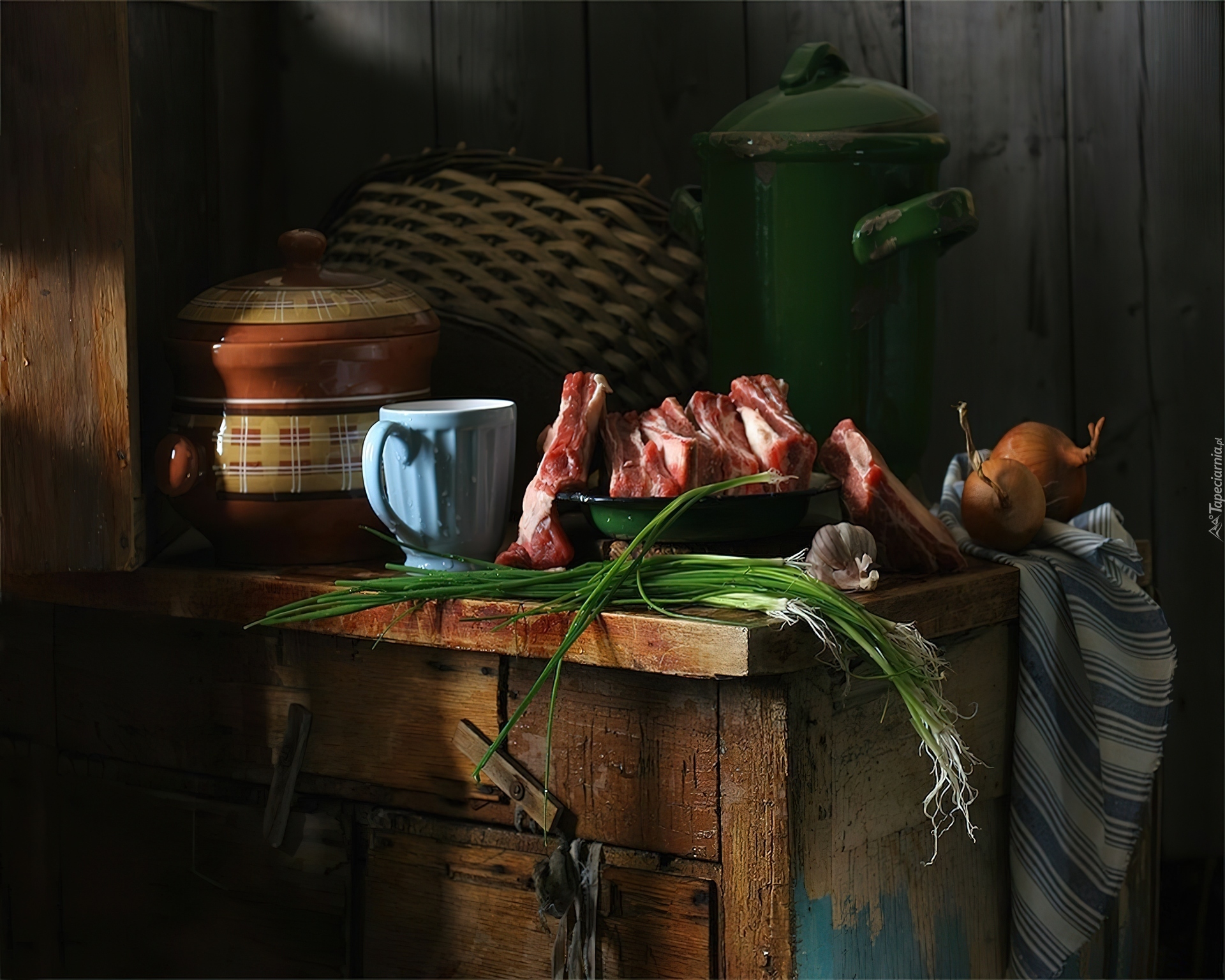 Edytor tapety: Naczynia, Mięsko, Warzywa, Gotowanie
