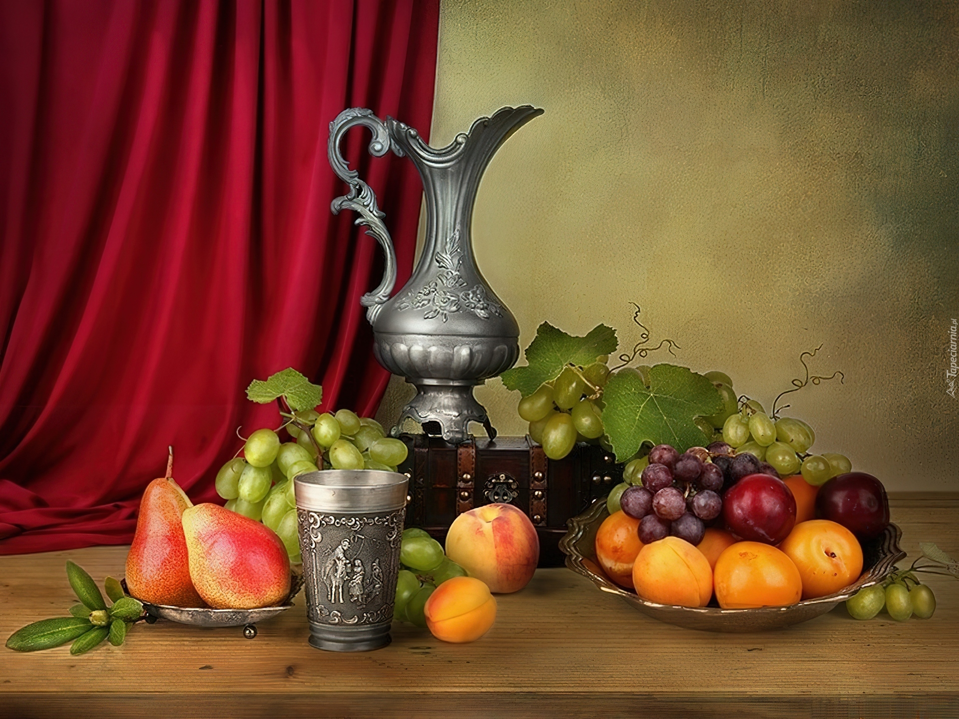Edytor tapety: Srebrne, Naczynia, Różne, Owoce, Winogrona