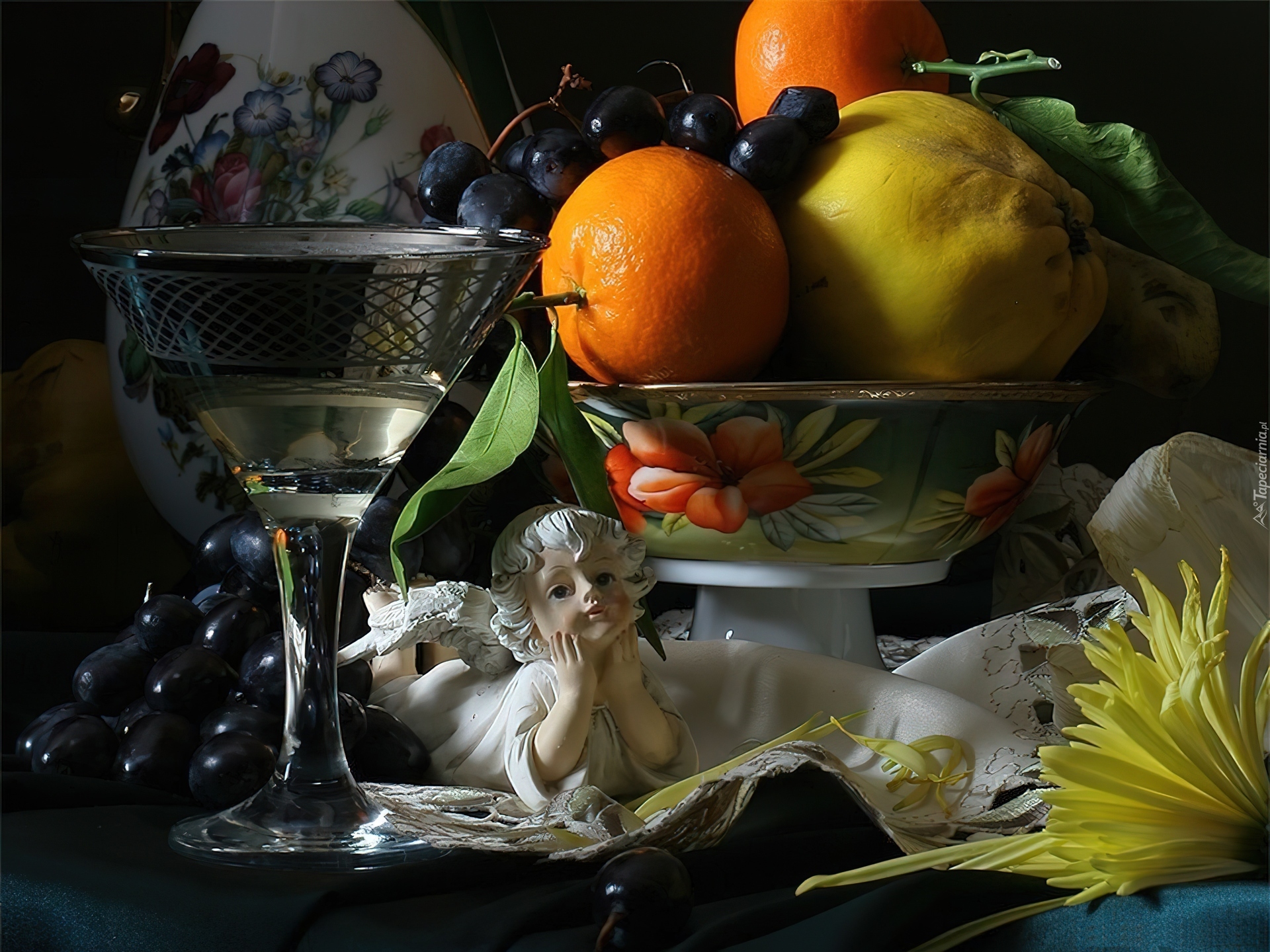 Edytor tapety: Owoce, Naczynia, Figurka, Kwiat