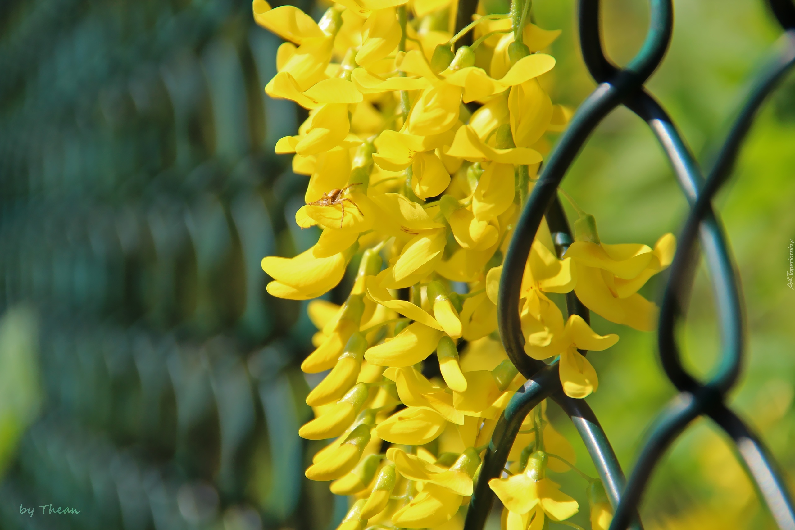 Edytor tapety: Żółte, Kwiaty, Złotokap, Siatka, Ogrodzeniowa