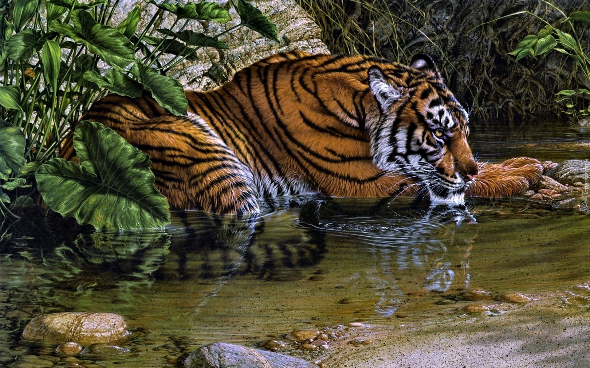 Edytor tapety: Tygrys, Woda, Odpoczynek