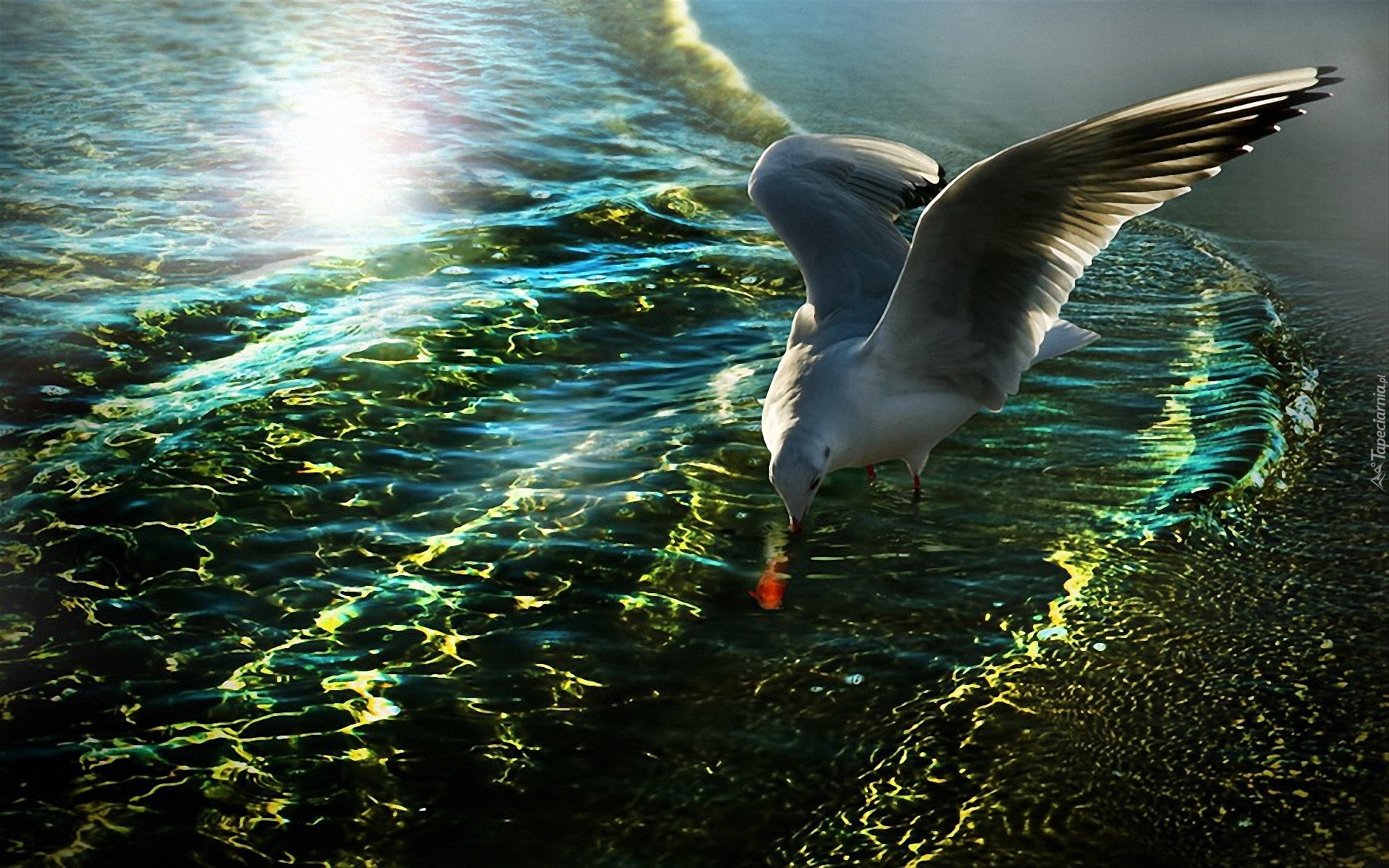 Edytor tapety: Mewa, Polowanie, Morze, Blask