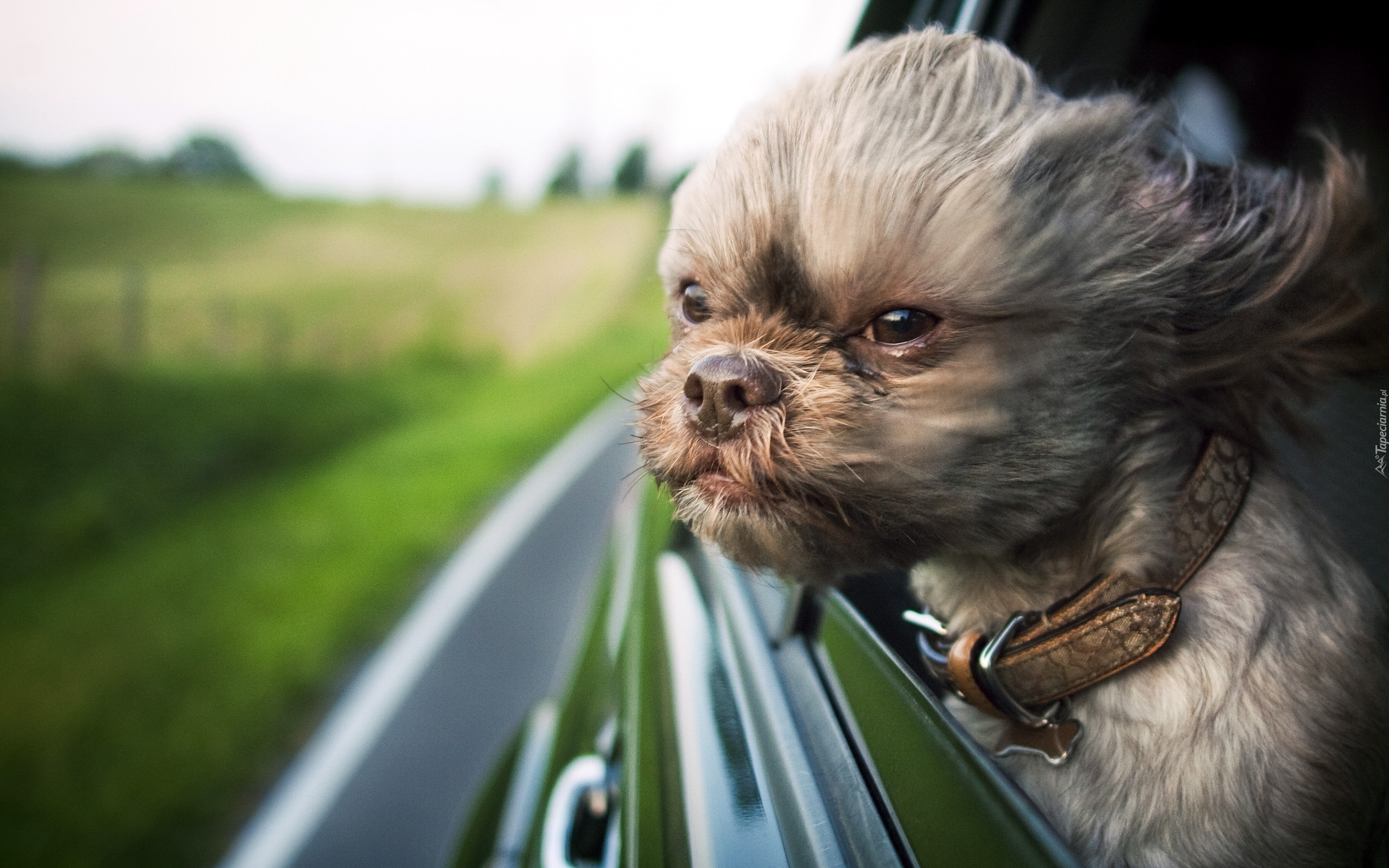 Edytor tapety: Piesek, W, Oknie, Samochodu, Wiatr