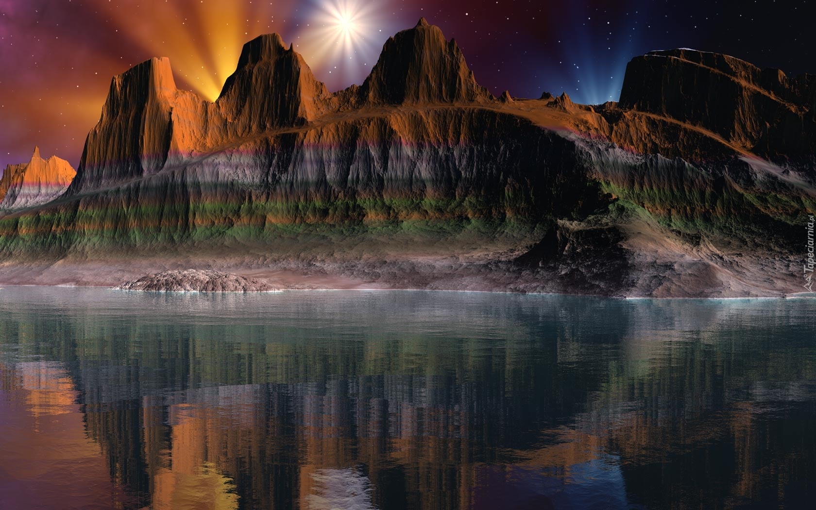 Edytor tapety: Kanion, Jezioro, Odbicie, Noc