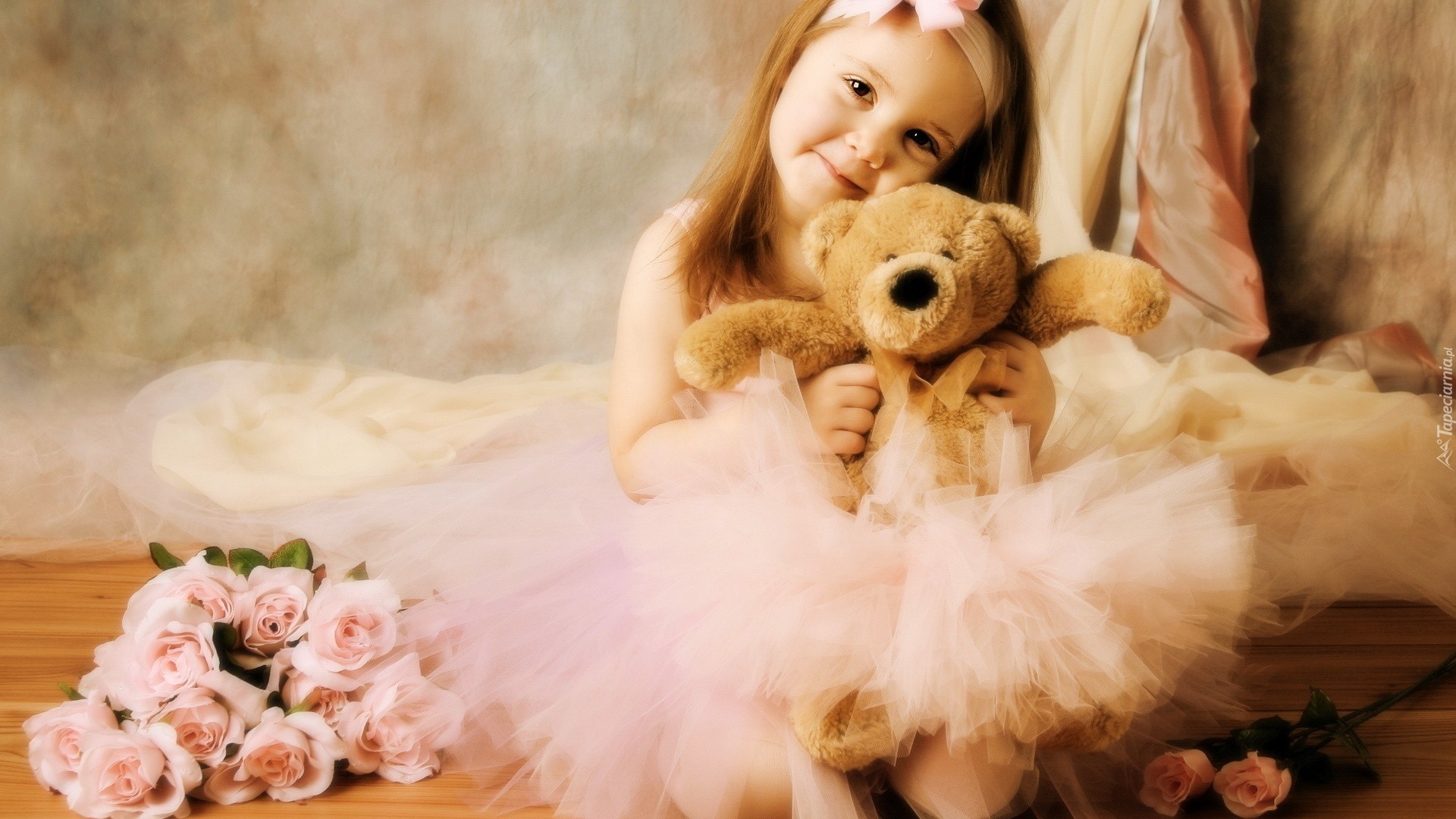 Edytor tapety: Dziewczynka, Baletnica, Sukienka, Miś