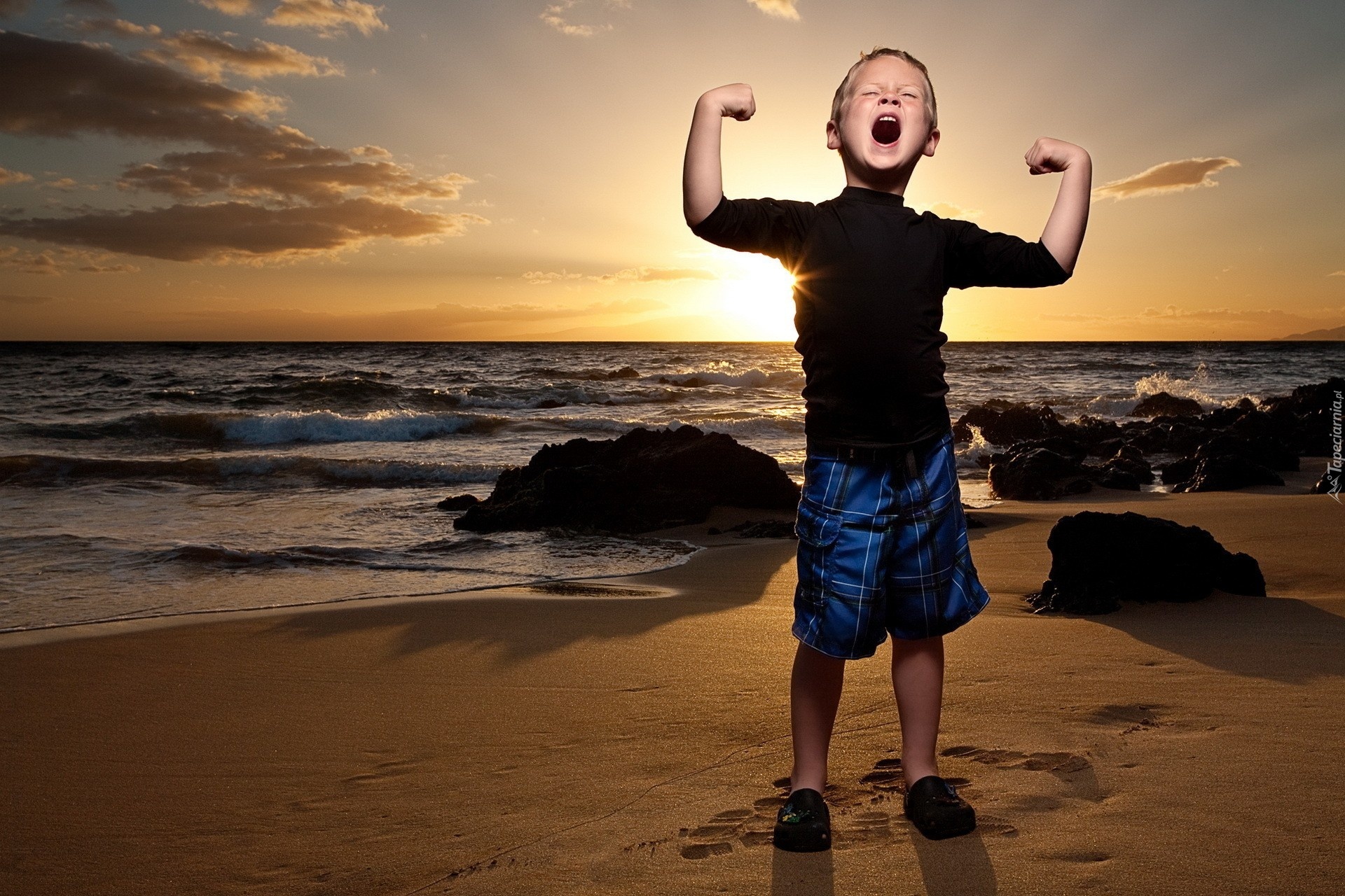Edytor tapety: Chłopiec, Plaża, Niebo, Siłacz