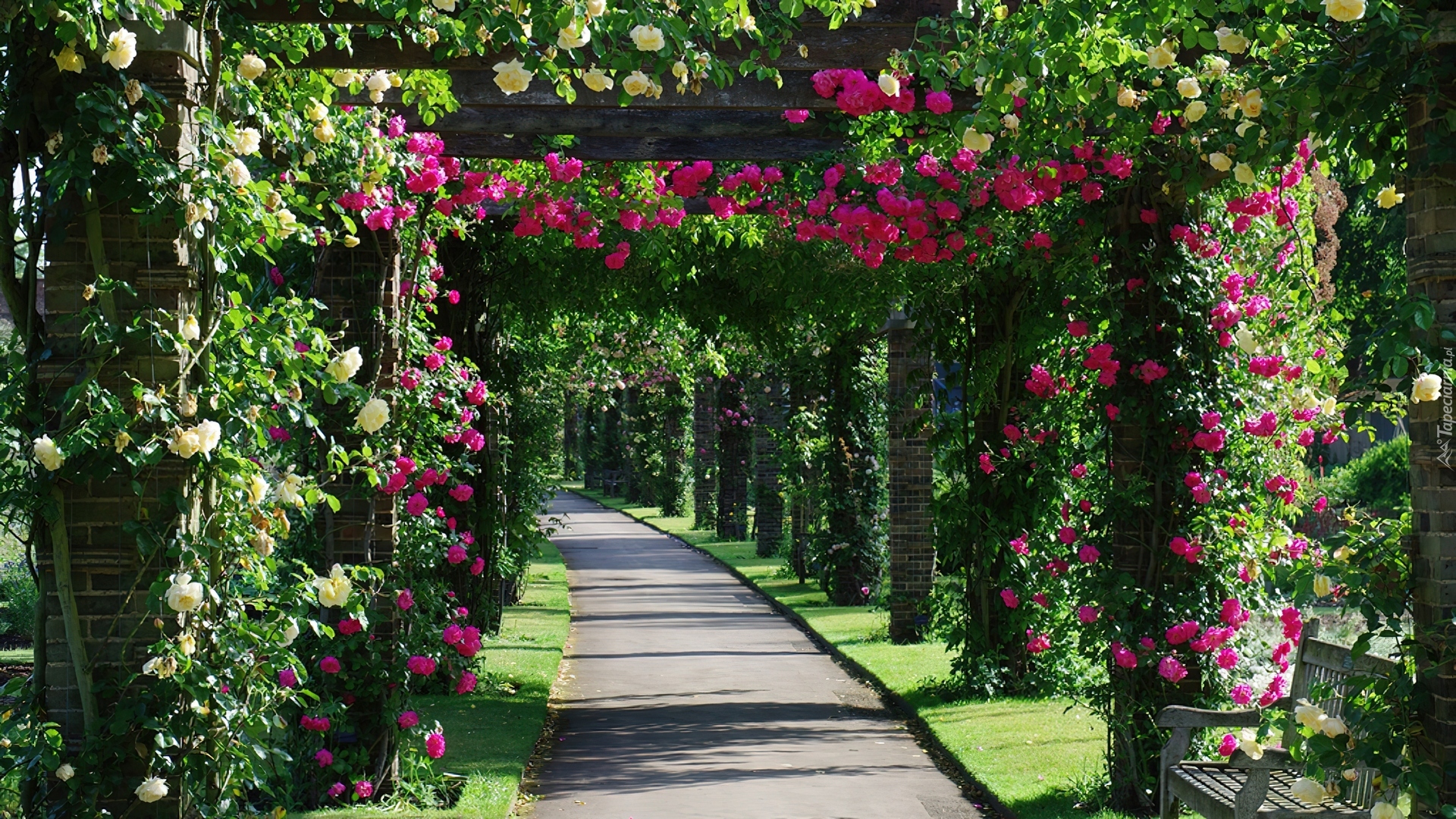 Edytor tapety: Wiszące, Róże, Alejka, Park