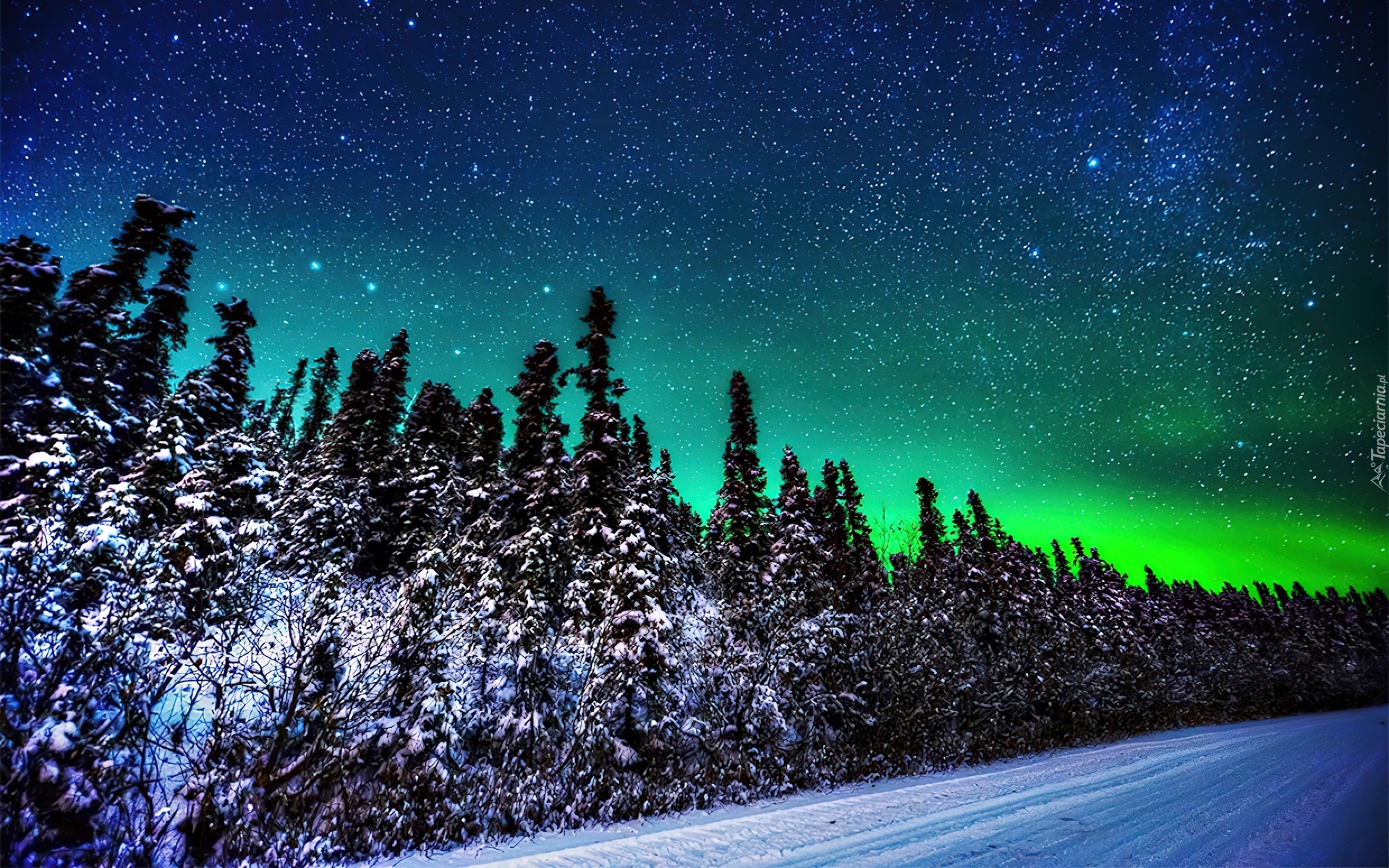 Edytor tapety: Droga, Drzewa, Zorza, Polarna