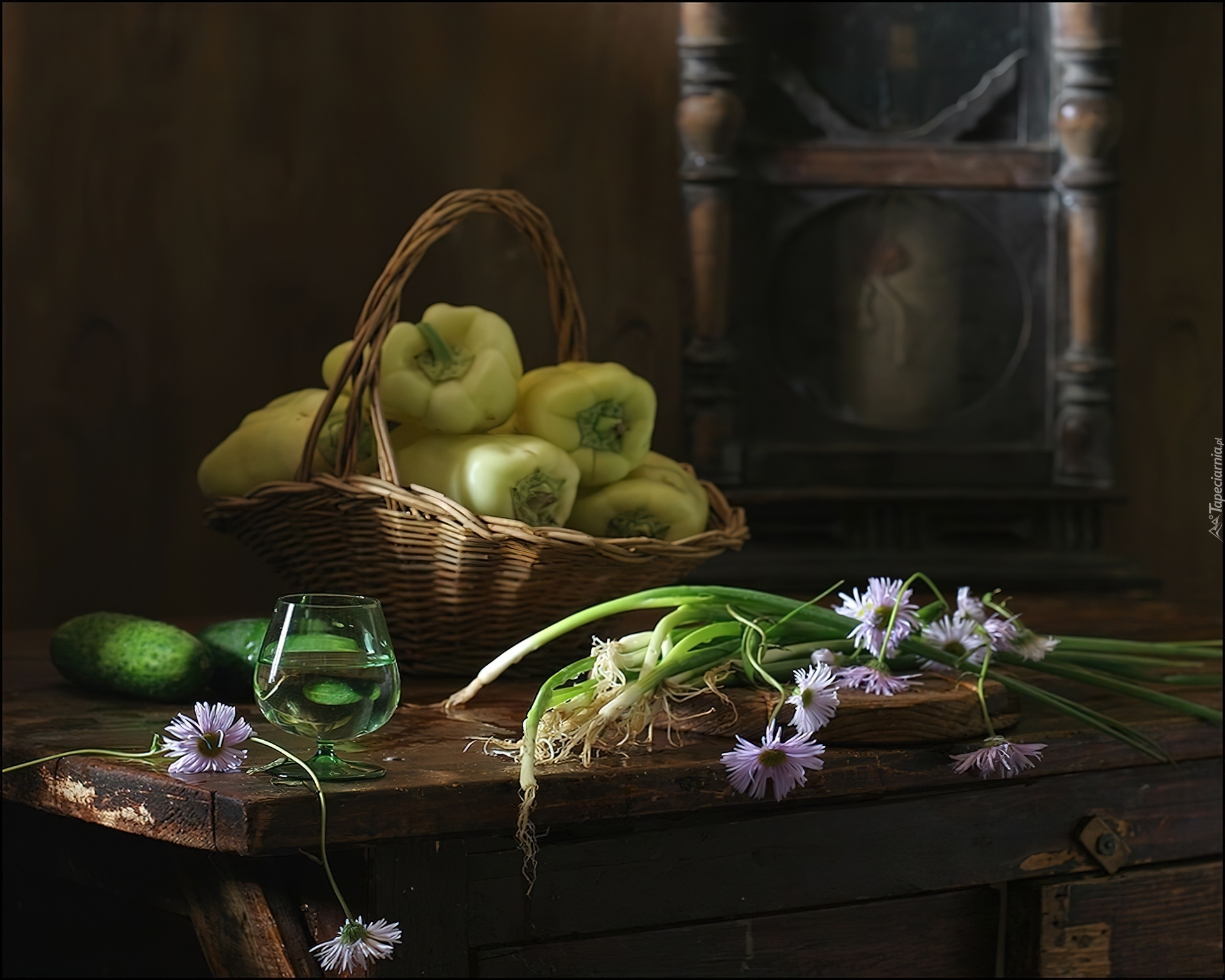 Edytor tapety: Koszyk, Zielona, Papryka, Szczypiorek