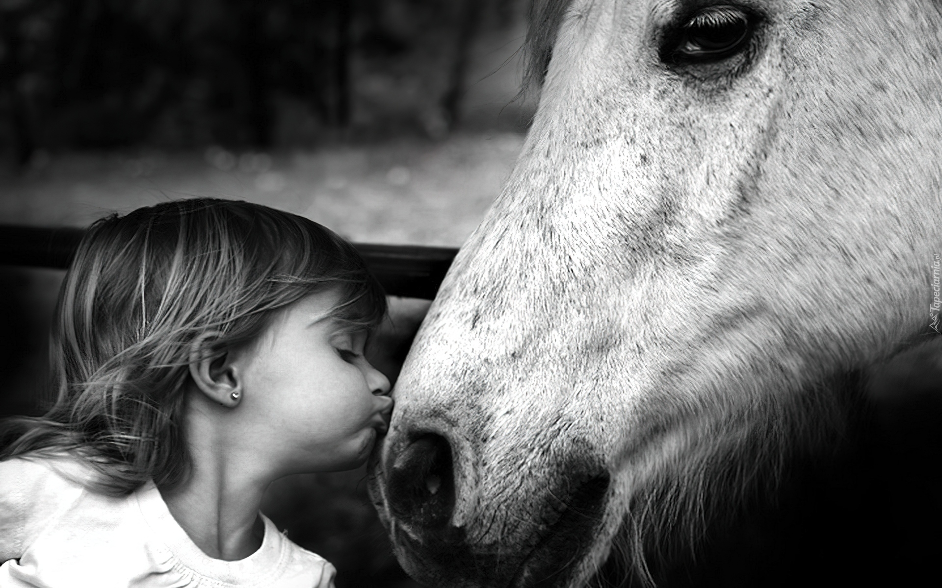 Edytor tapety: Dziewczynka, Koń, Buziak