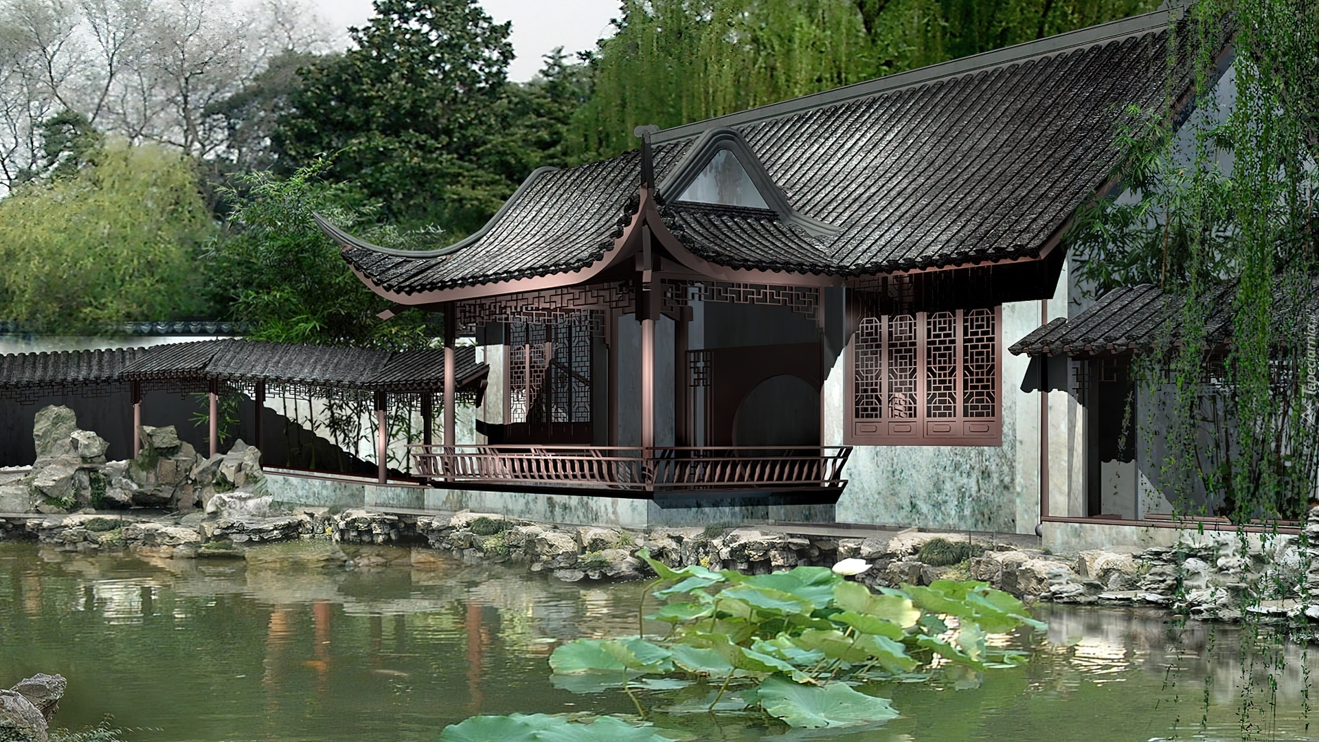 Edytor tapety: Las, Staw, Dom