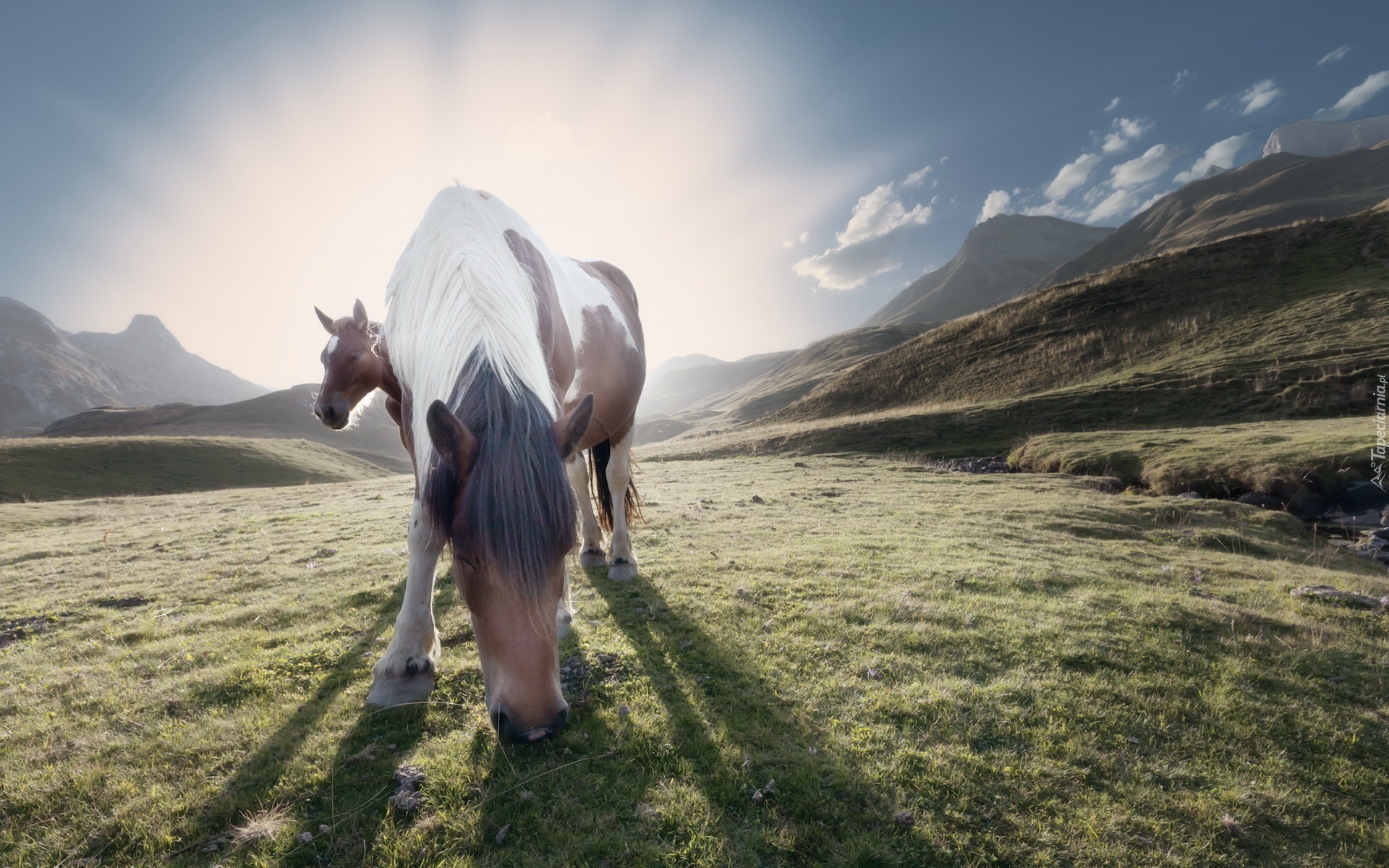 Edytor tapety: Dwa, Konie, Wzgórza