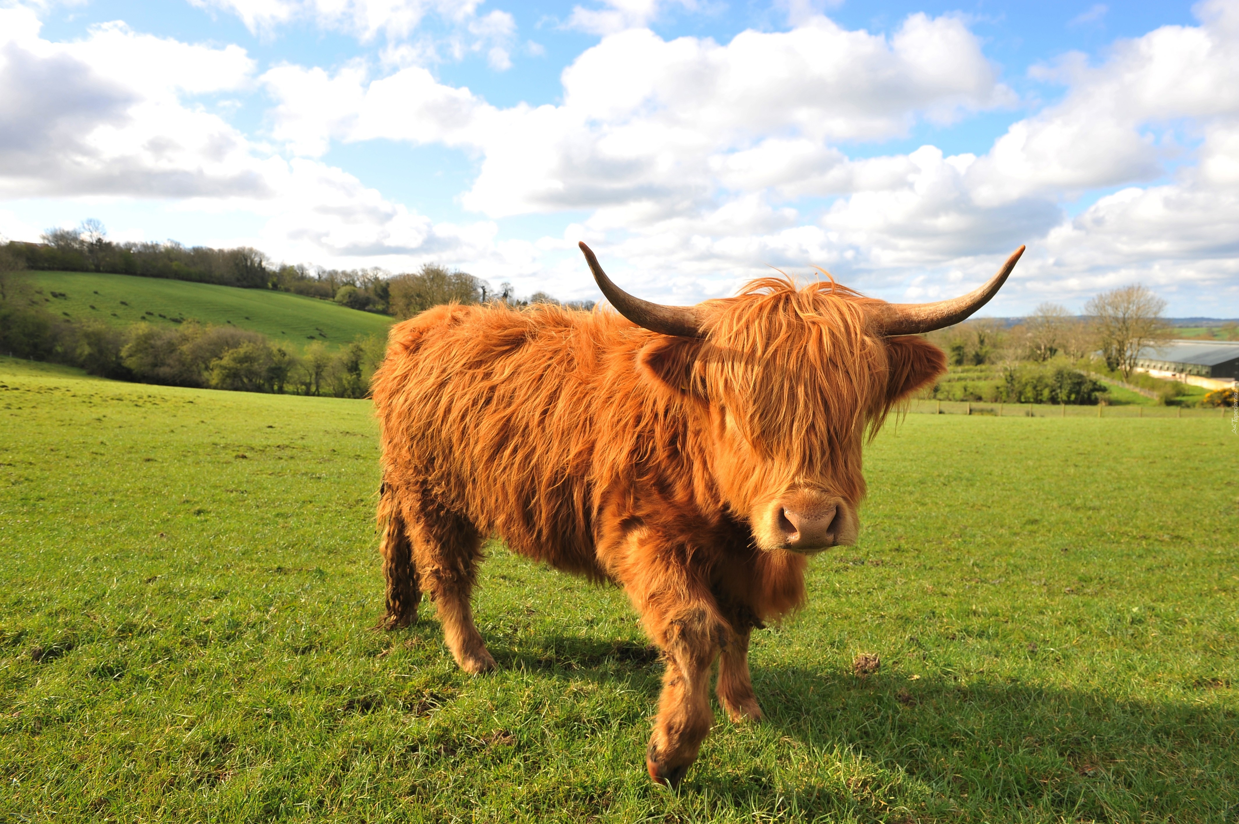 Edytor tapety: krowa szkocka, Rogi, Trawa