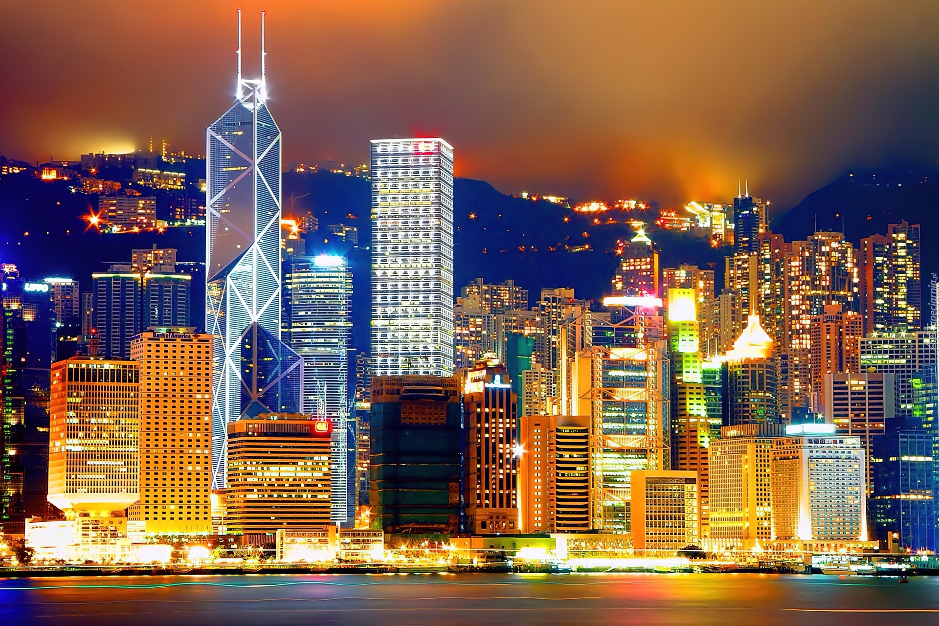 Edytor tapety: Hong Kong, Nocą, Wieżowce