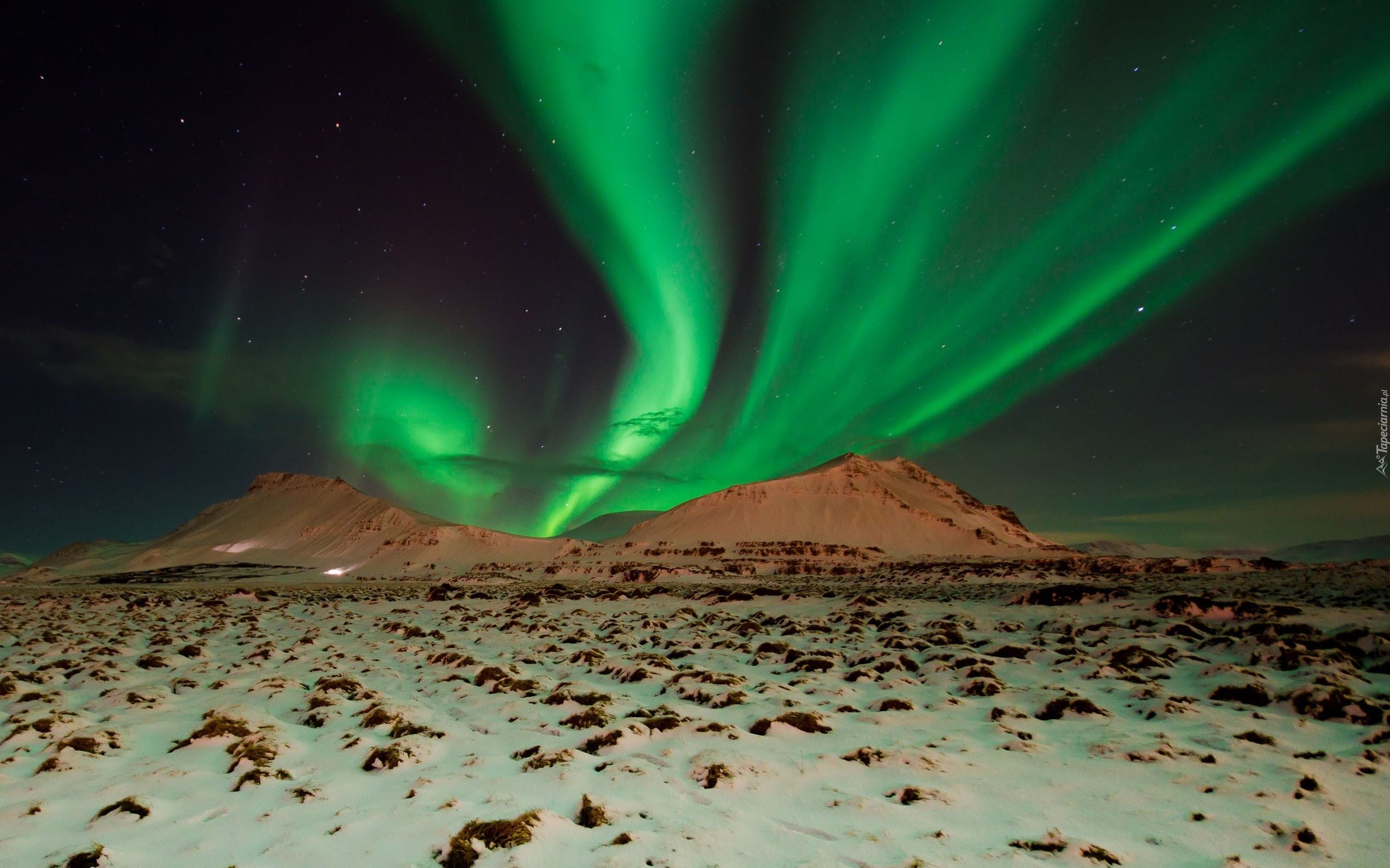 Edytor tapety: Niebo, Zorza Polarna, Góry