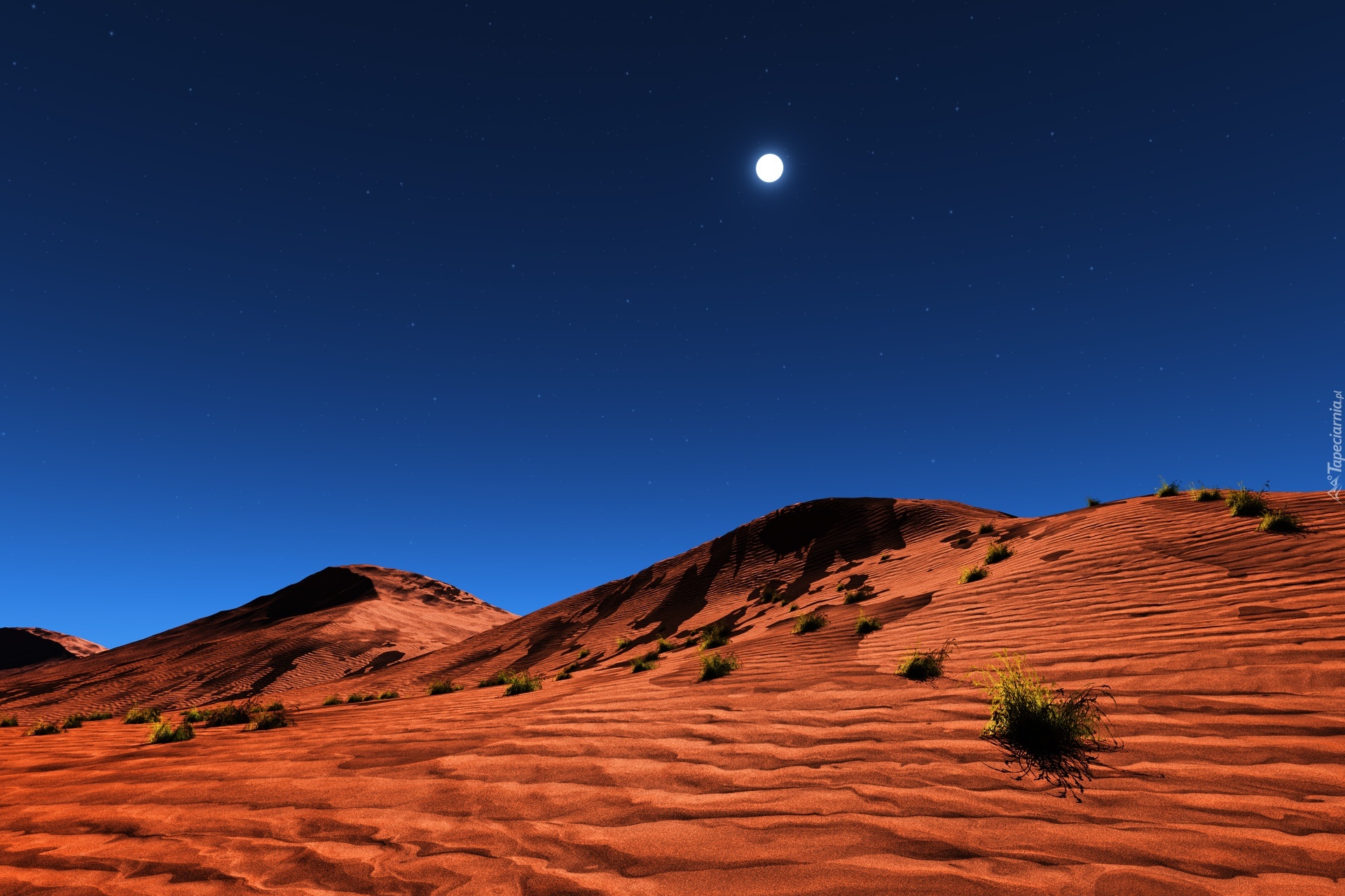 Edytor tapety: Pustynia, Wydmy, Piasek, Księżyc