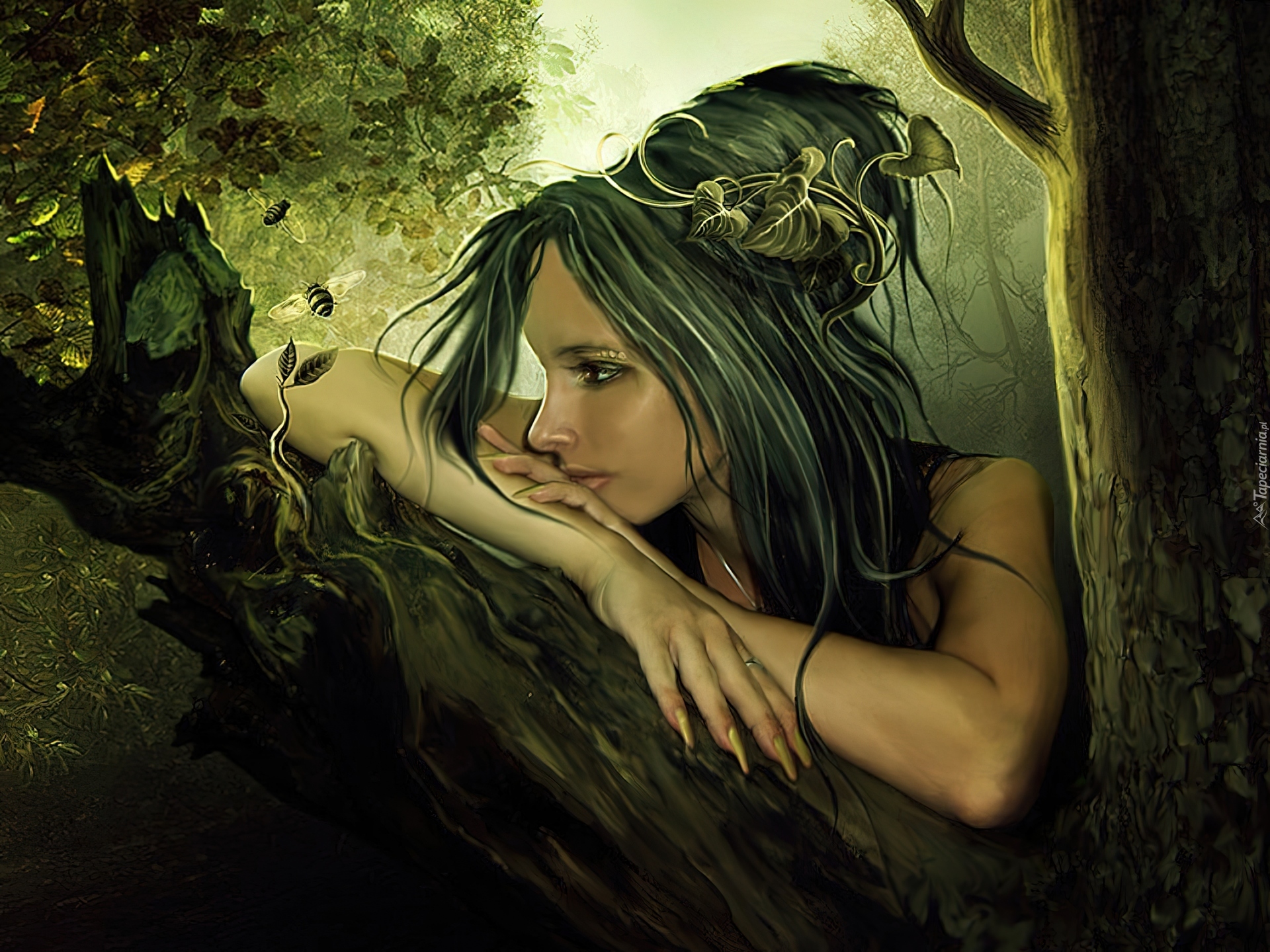 Edytor tapety: Dziewczyna, Drzewo, Pszczoły