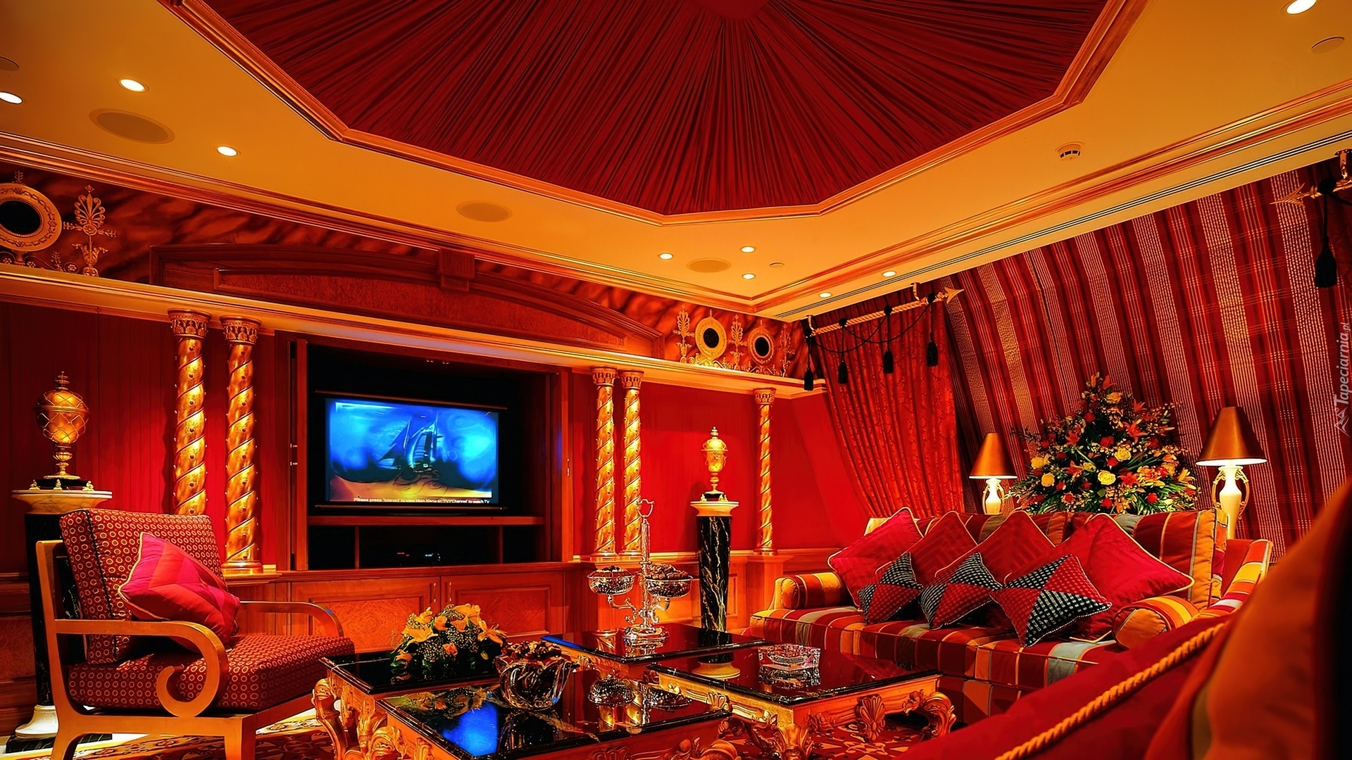 Edytor tapety: Czerwony, Salon, Kanapa, Fotel