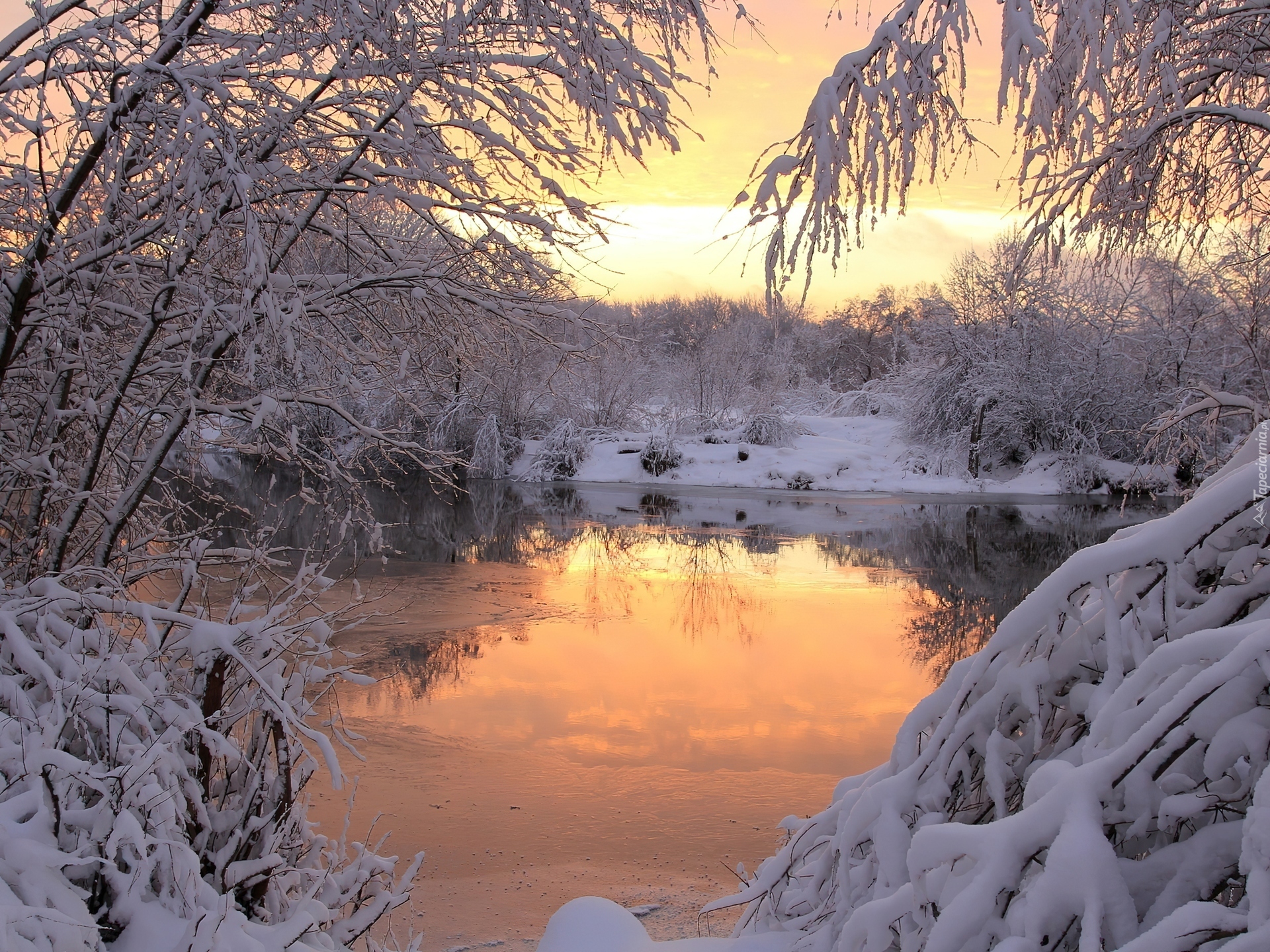 Edytor tapety: Zima, Rzeka, Drzewa