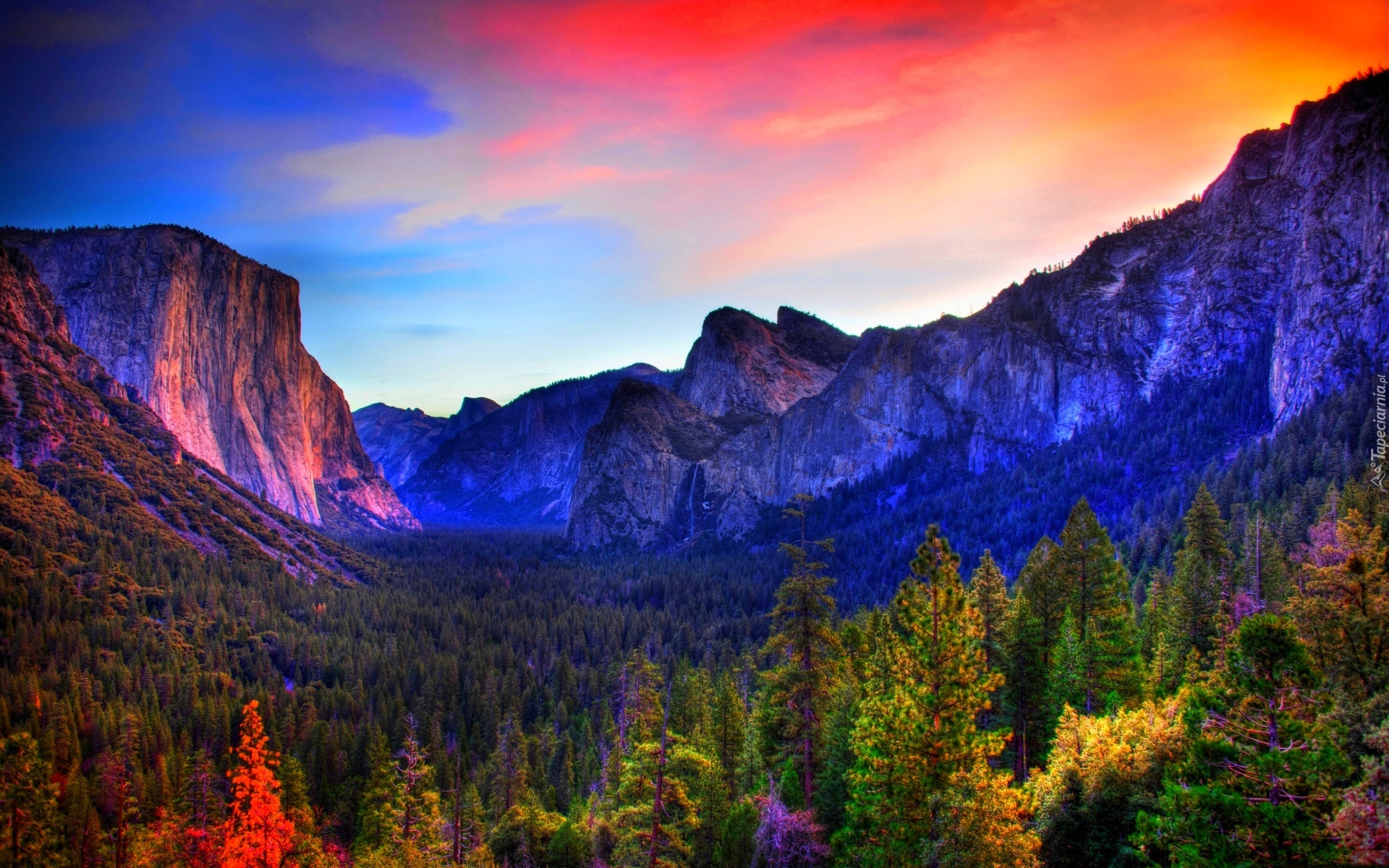 Edytor tapety: Góry, Lasy, Zachód, Słońca