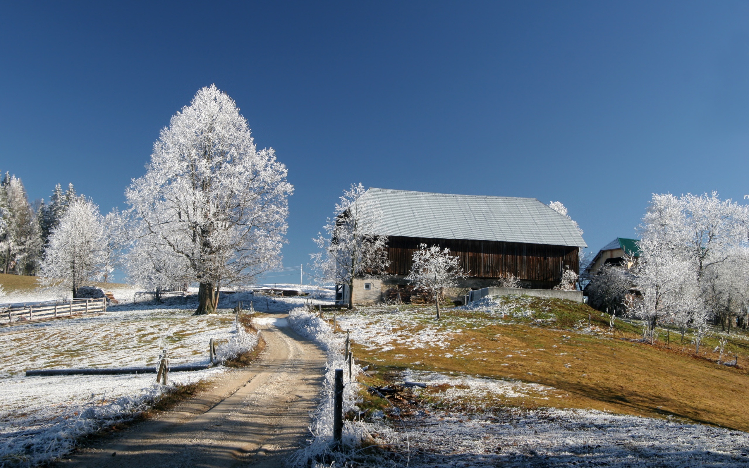 Edytor tapety: Polna, Droga, Zagrody, Stodoła