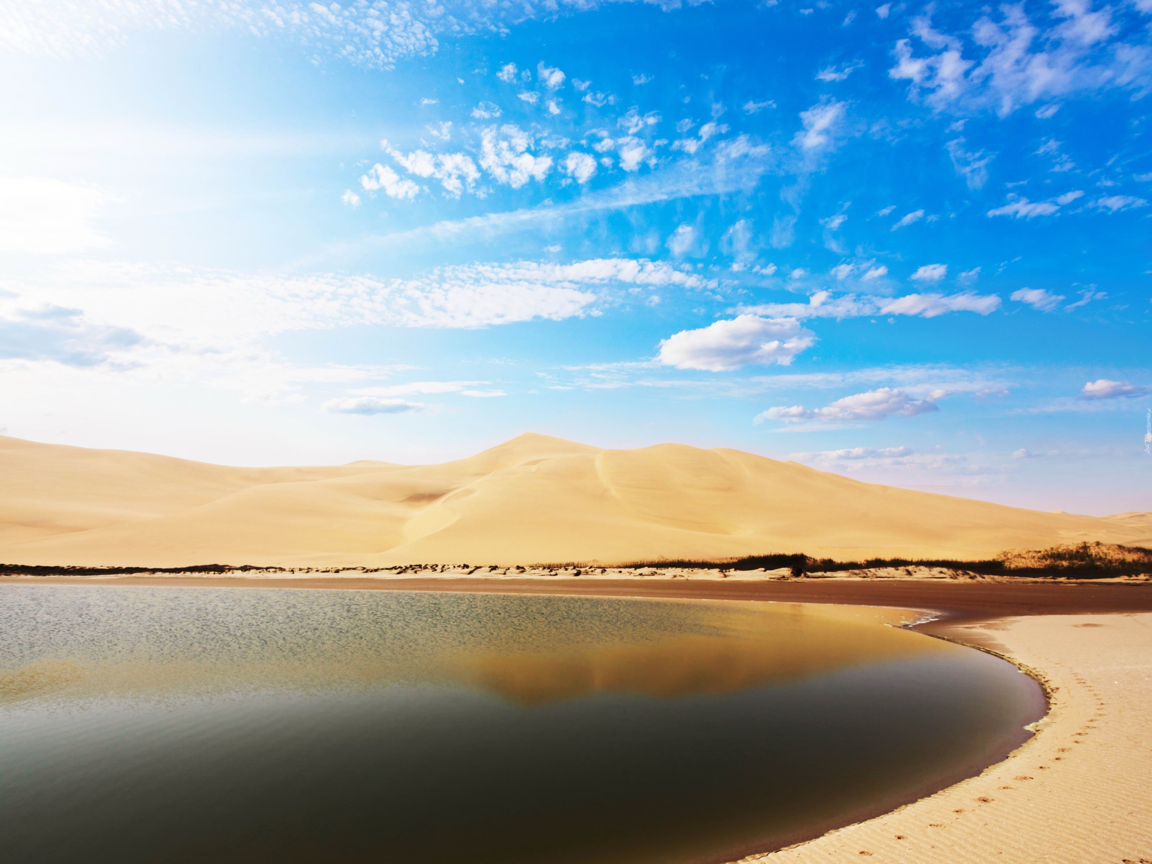 Edytor tapety: Pustynia, Wydmy, Jezioro, Promienie, Słoneczne