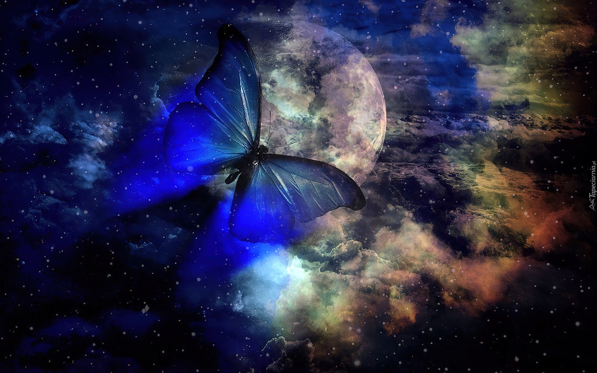 Edytor tapety: Motyl, Księżyc, Niebo