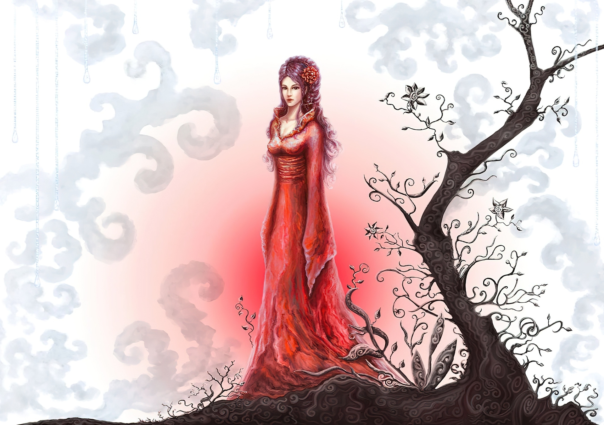Edytor tapety: Dziewczyna, Czerwień, Drzewo