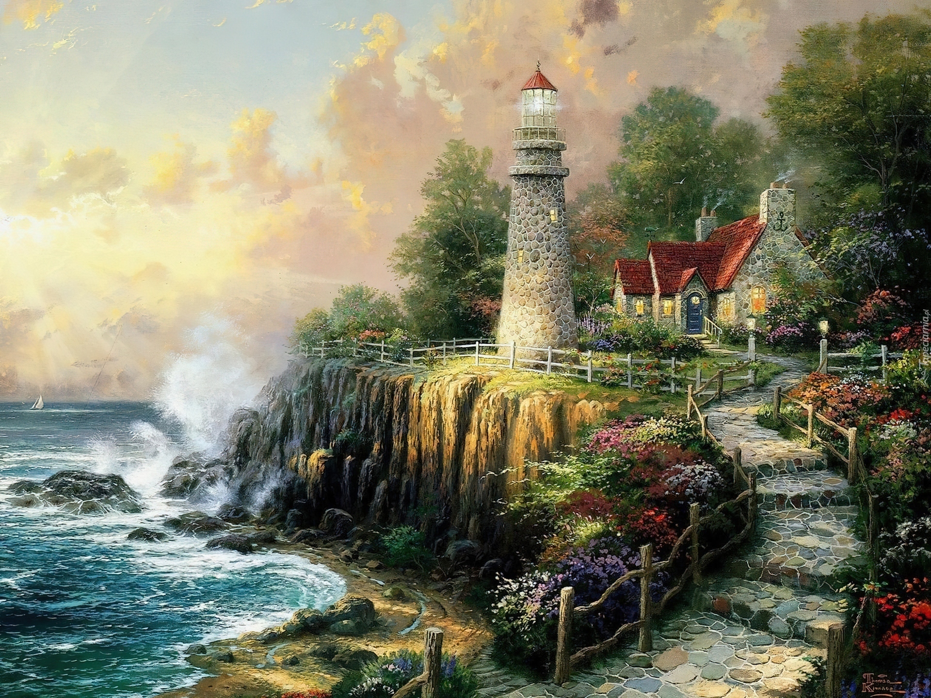 Edytor tapety: Wybrzeże, Morze, Latarnia morska, Ścieżka, Thomas Kinkade