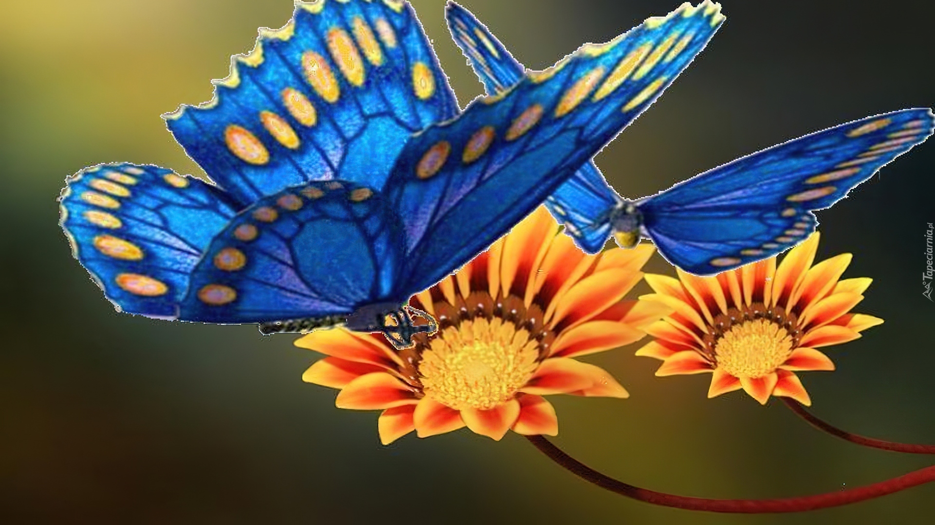 Edytor tapety: Niebieskie, Motyle, Kwiaty