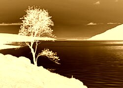 Edytor tapety: Drzewo, Jezioro, Góry