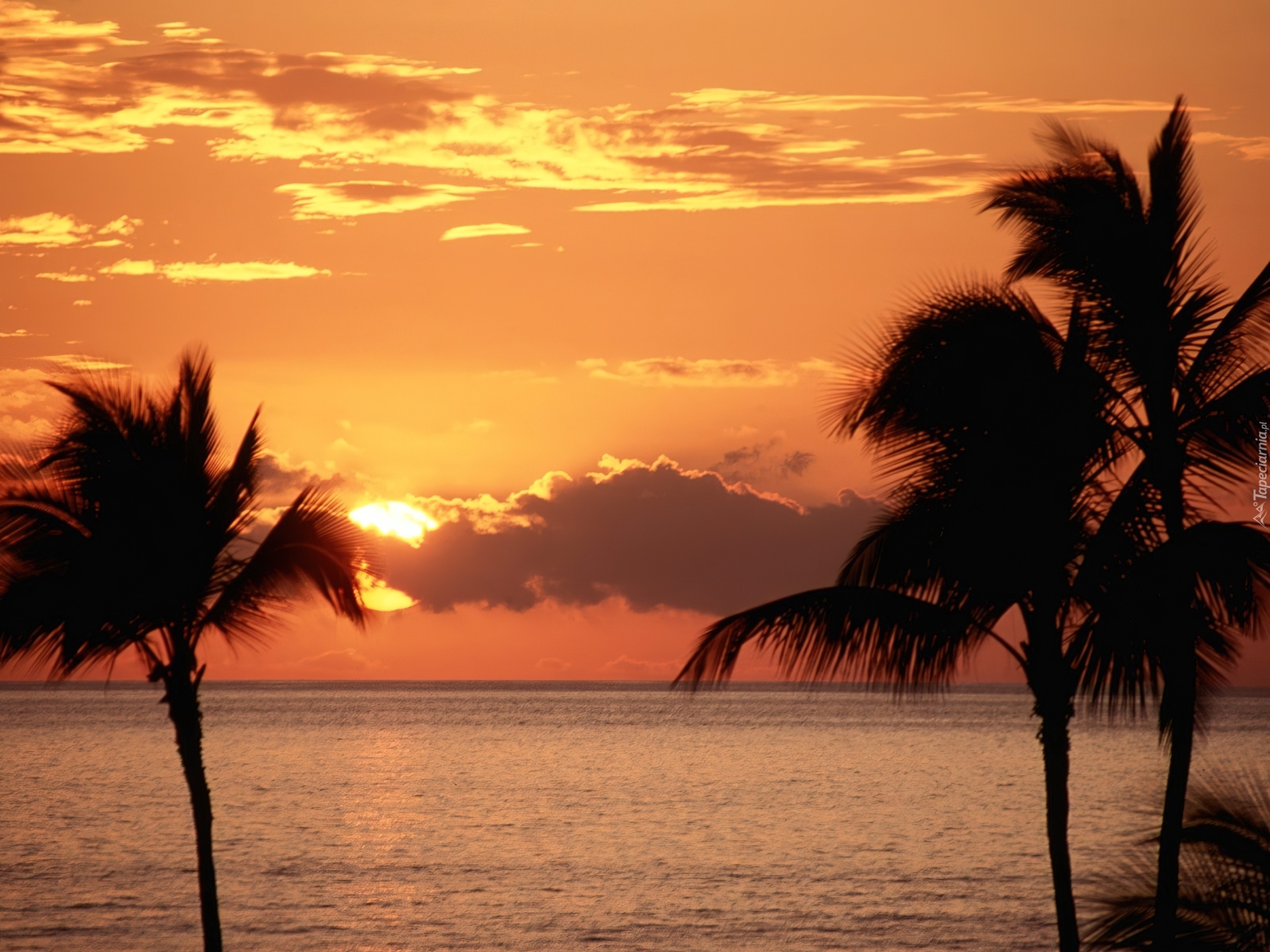 Edytor tapety: Zachód, Słońce, Promienie, Palmy, Morze