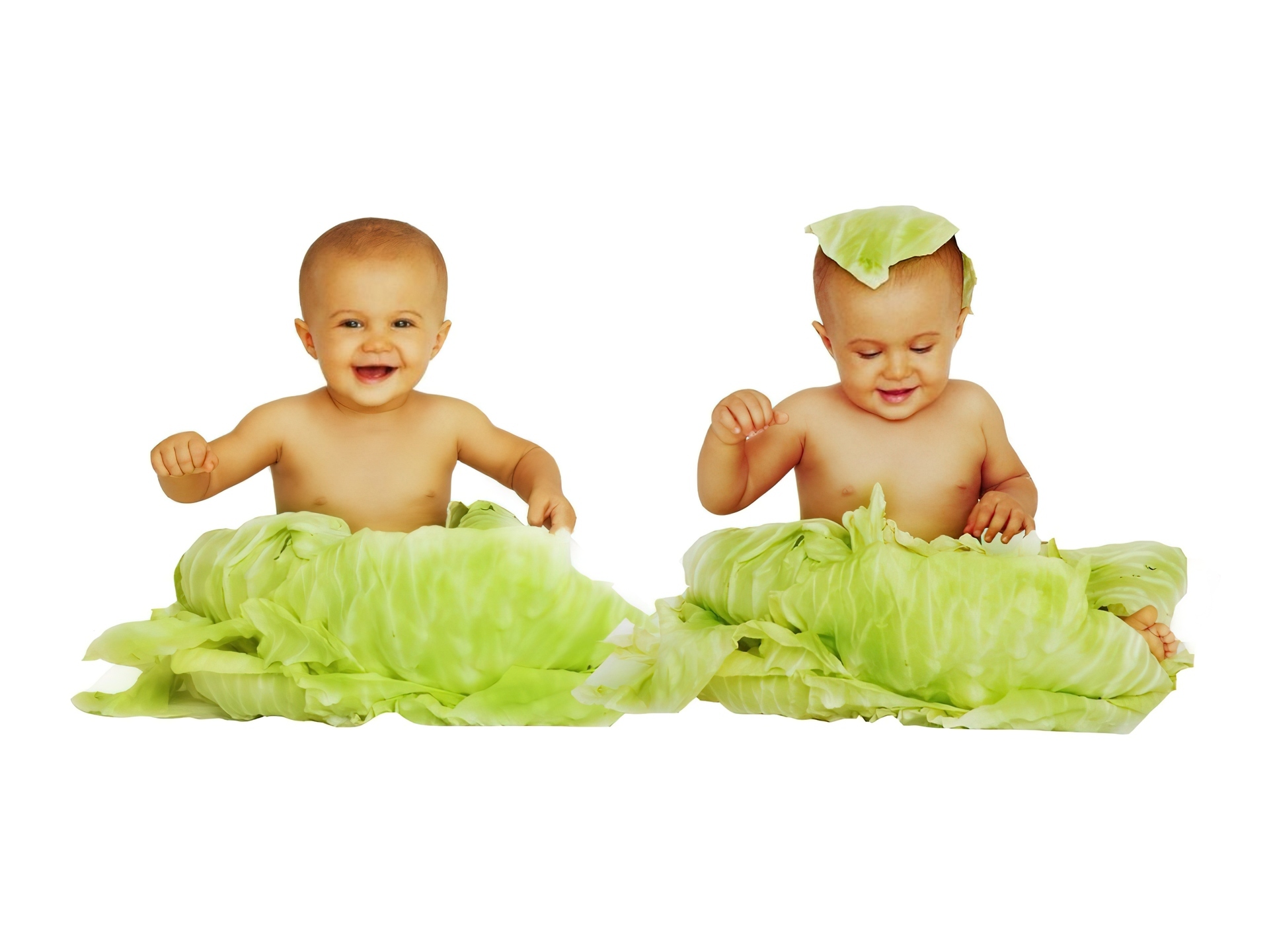 Edytor tapety: Dwoje, Dzieci, Liście, Kapusty