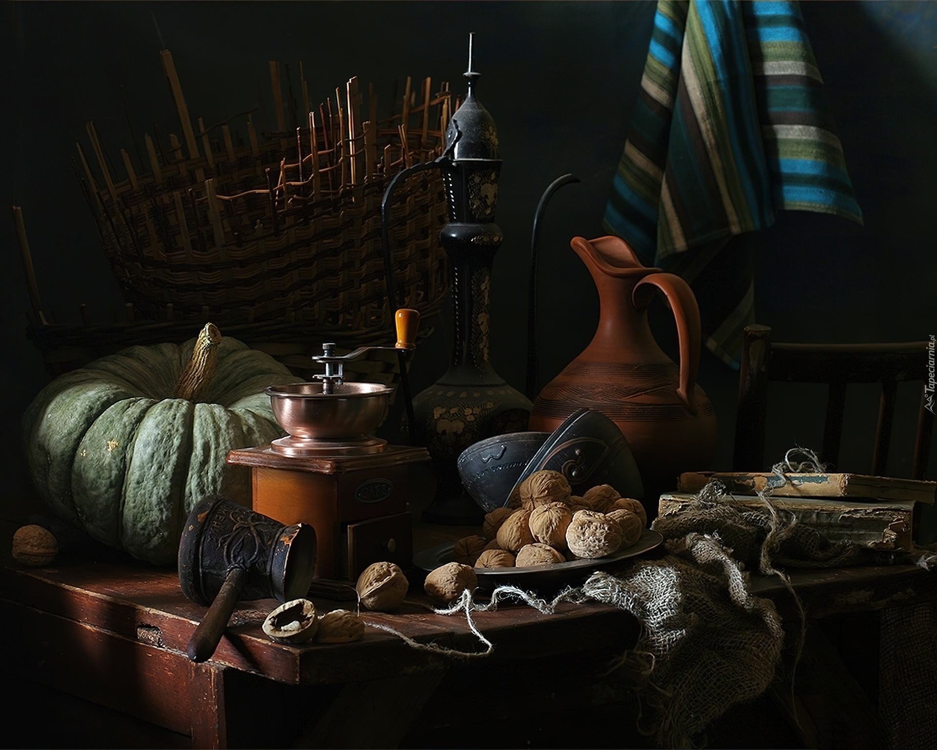 Edytor tapety: Dynia, Orzechy, Stare, Naczynia