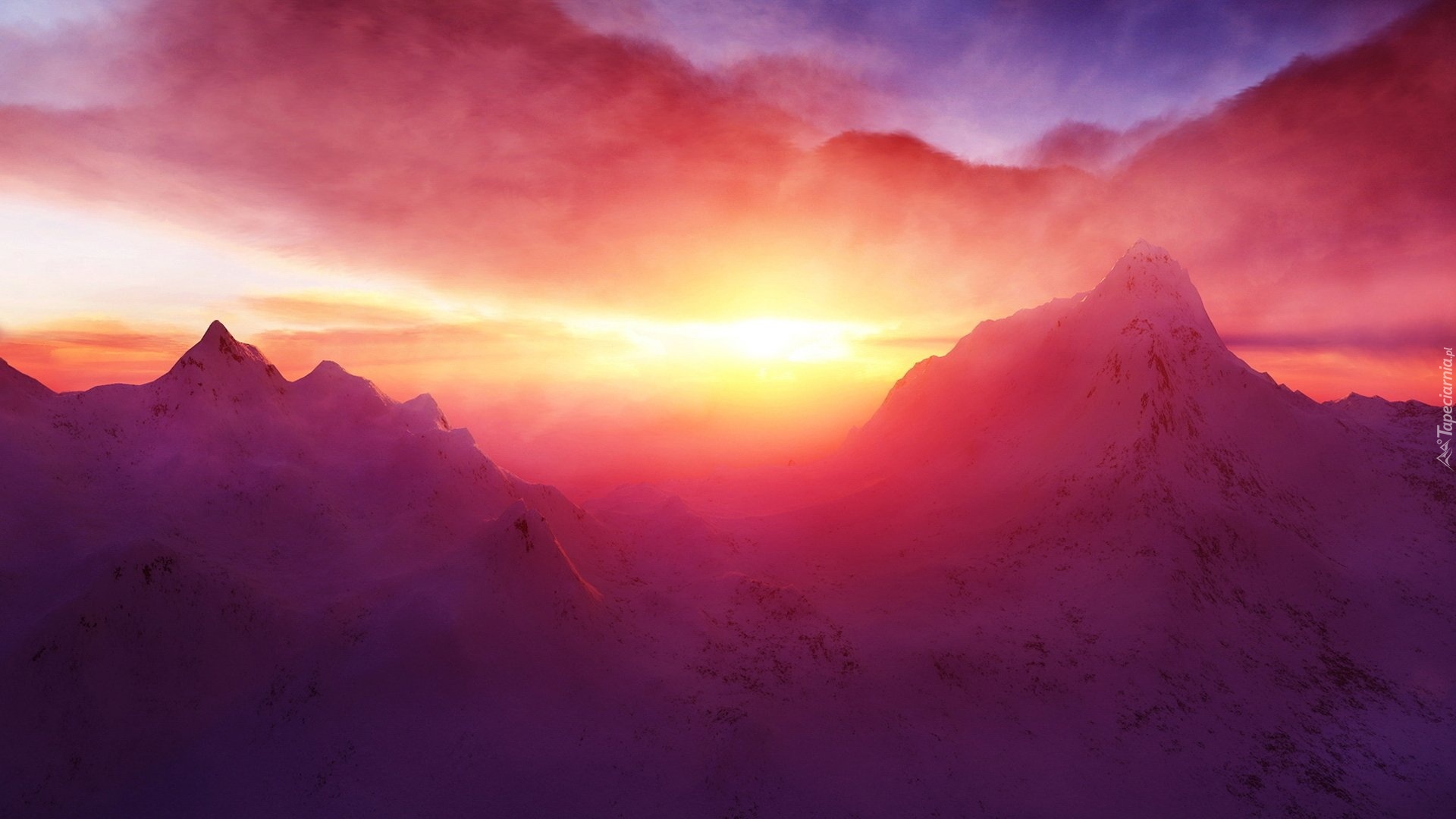 Edytor tapety: Zachód, Słońca, Promienie, Góry