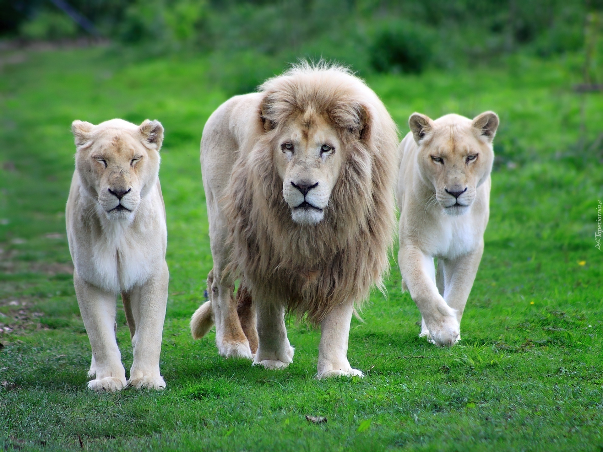 Edytor tapety: Lew, Dwie, Lwice, Trawa