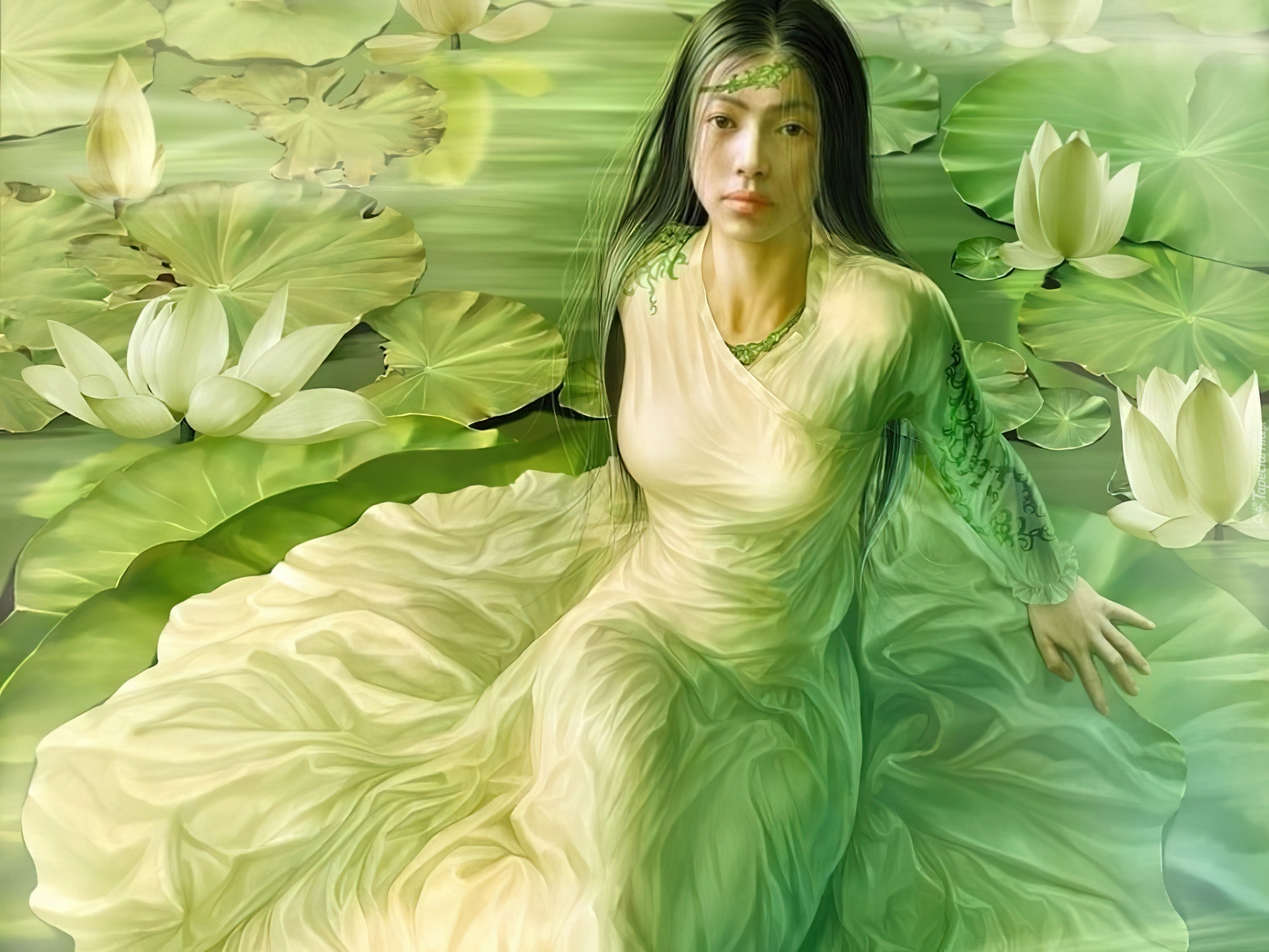 Edytor tapety: Dziewczyna, Lilie, Liście