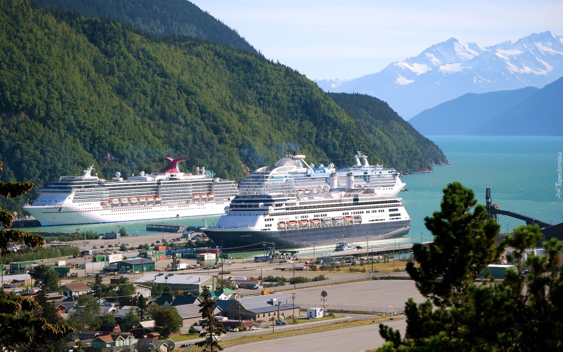 Edytor tapety: Wybrzeże, Zatoka, Morze, Statki, Góry