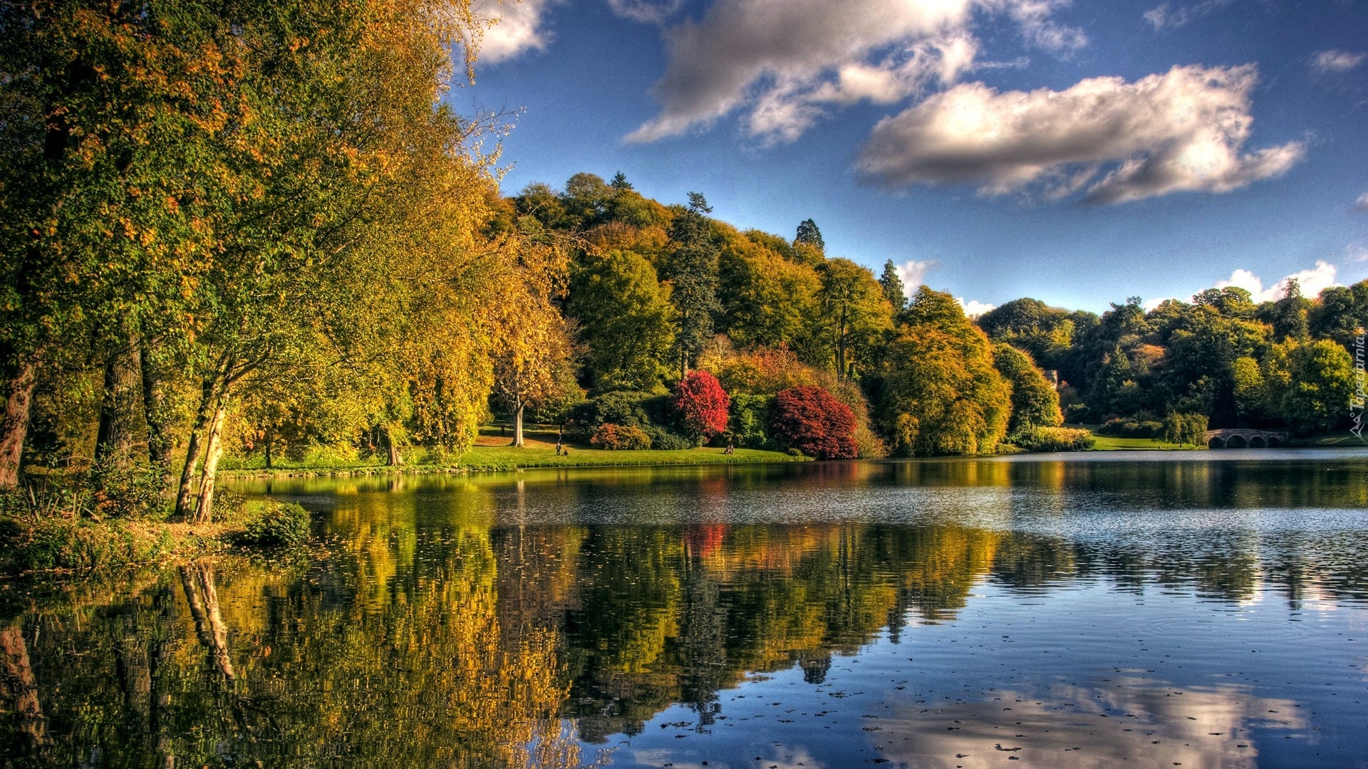 Edytor tapety: Jezioro, Drzewa, Niebo, Chmury, Jesień