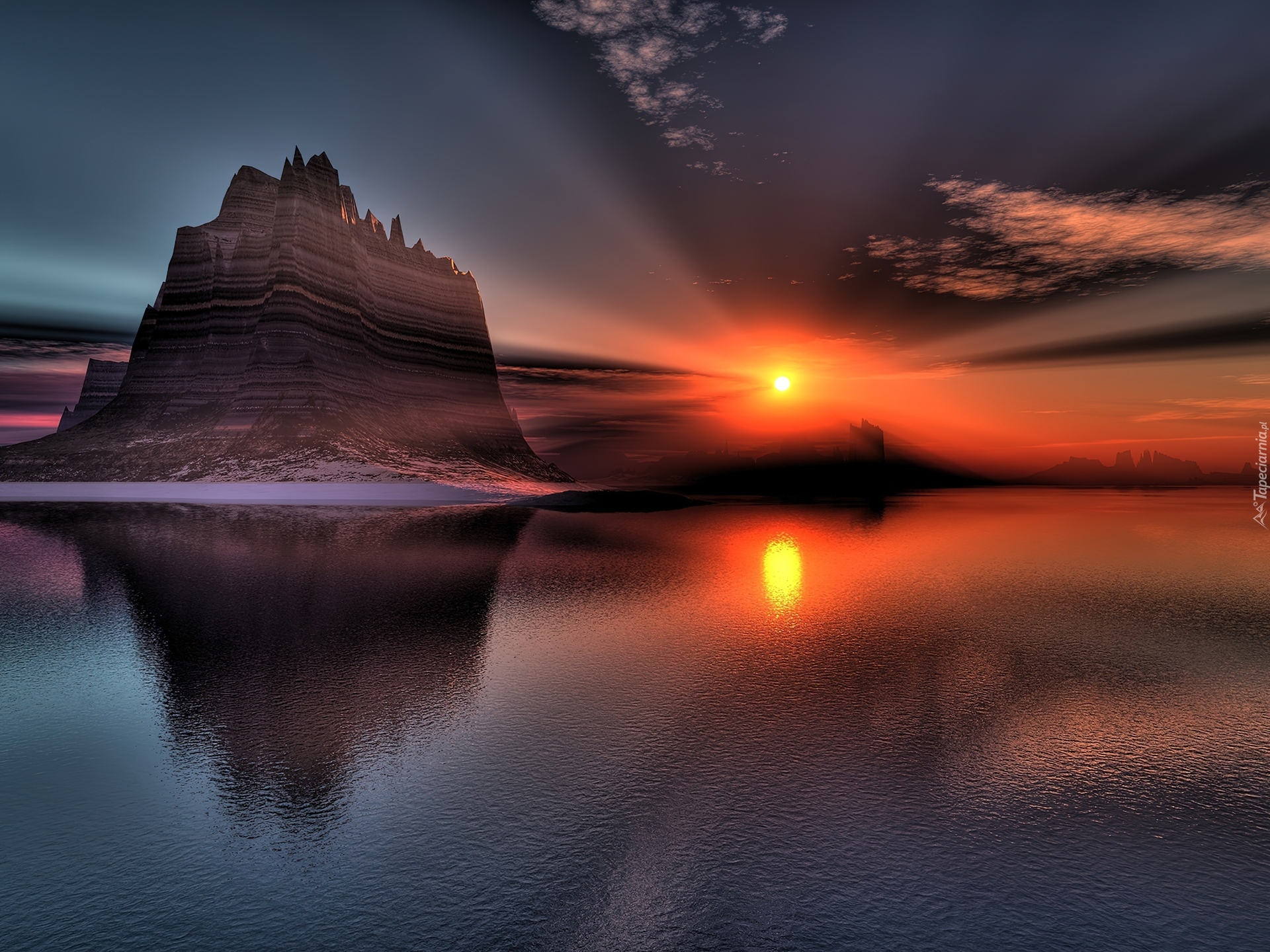 Edytor tapety: Woda, Góry, Zachód, Słońca