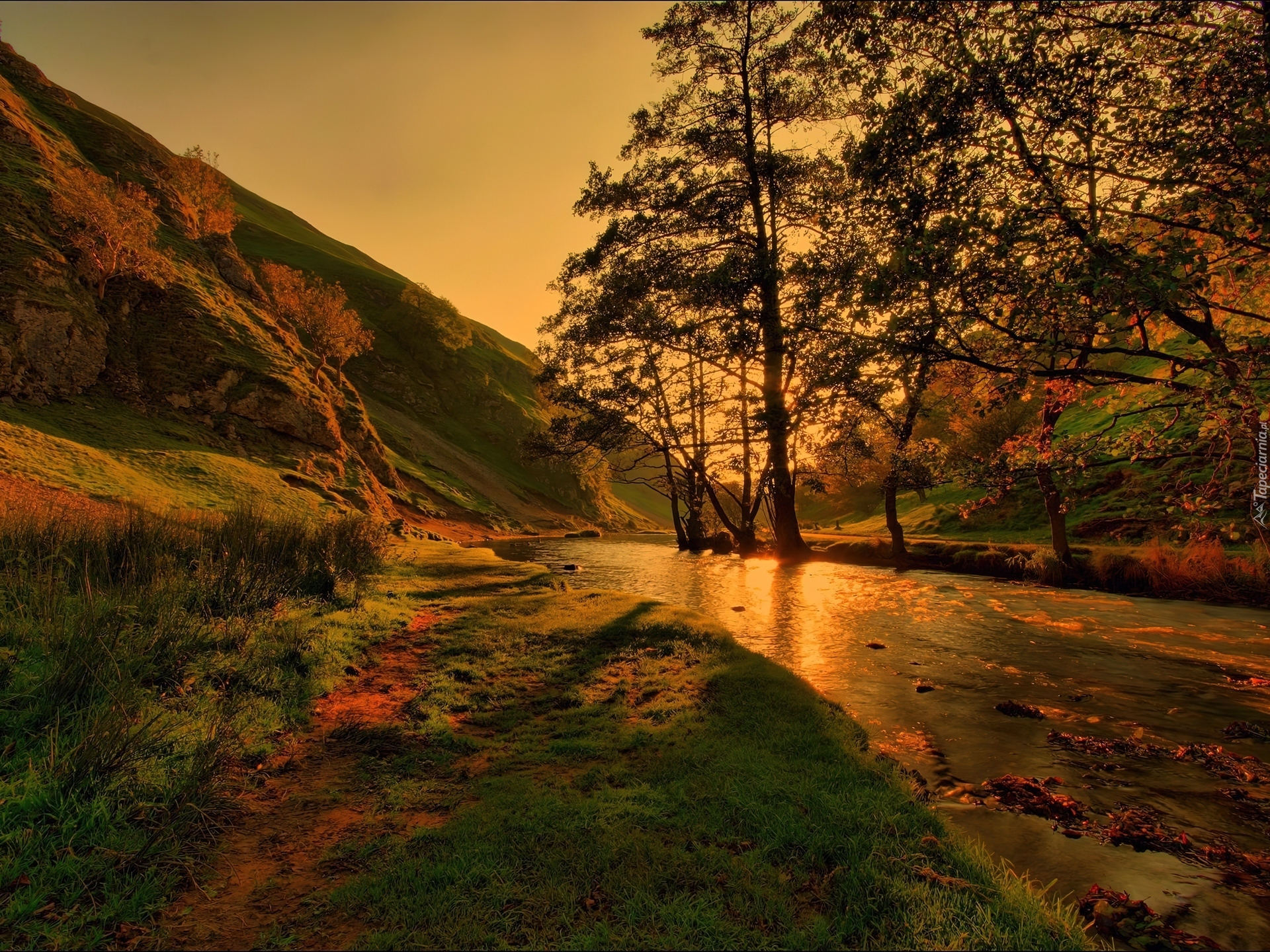 Edytor tapety: Rzeka, Góry, Drzewa, Zieleń