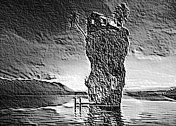 Edytor tapety: Domek, Skała, Woda, Zachód Słońca
