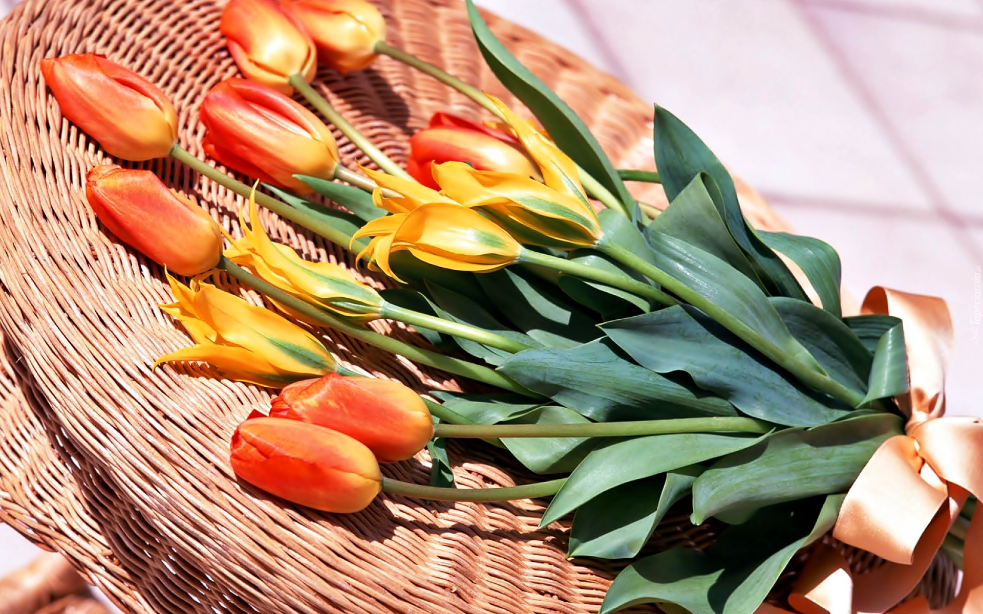 Edytor tapety: Bukiet, Tulipany, Kosz