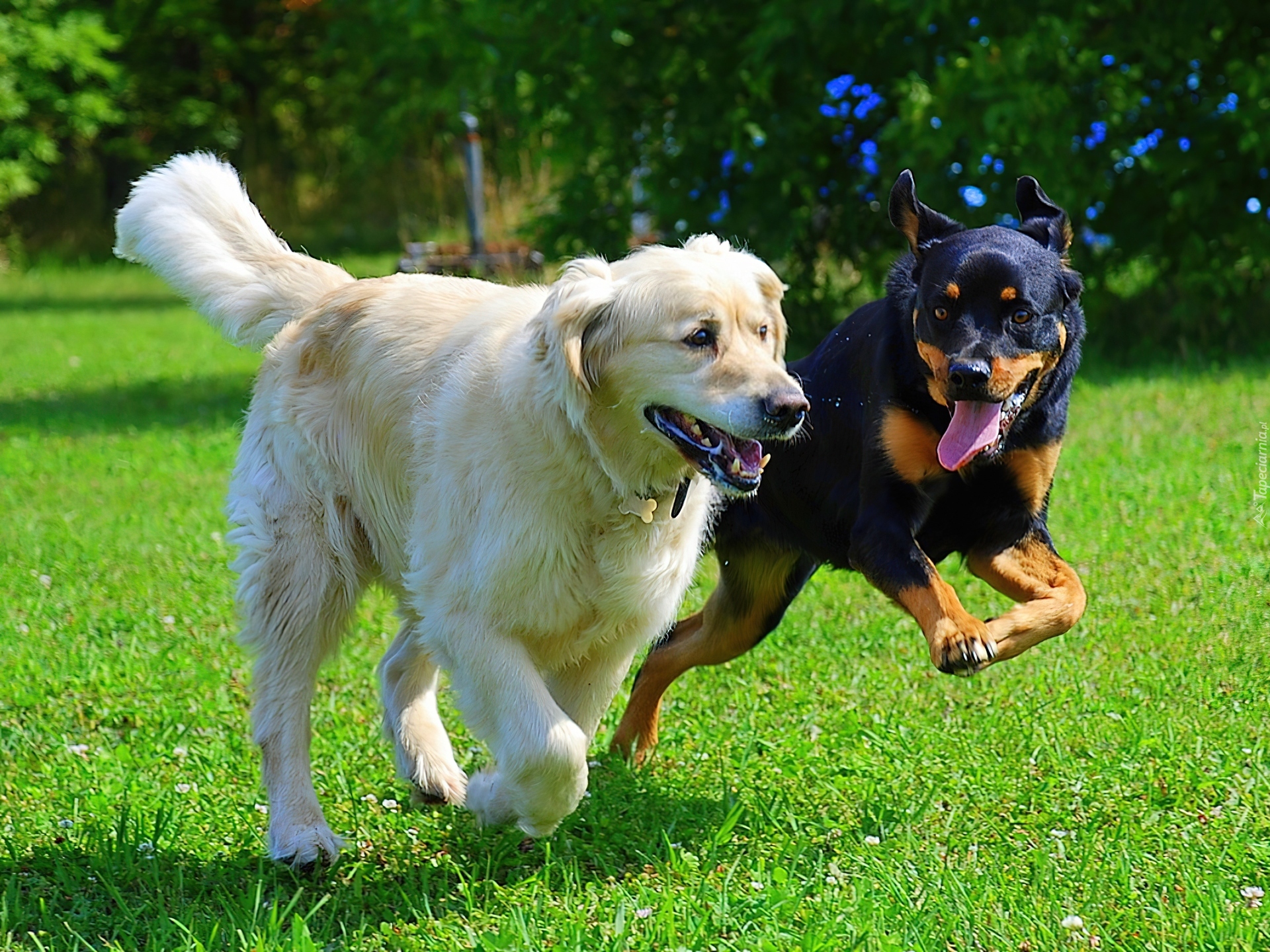 Edytor tapety: Dwa, Pieski, Zabawa, Trawa